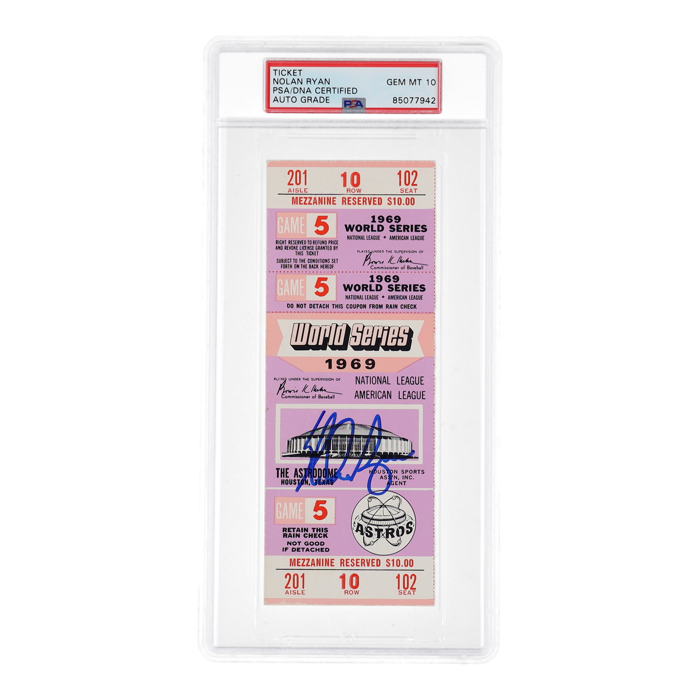 Nolan Ryan Signed 1969 World Series Original Houston Astrodome Ticket (PSA | Auto Grade 10)