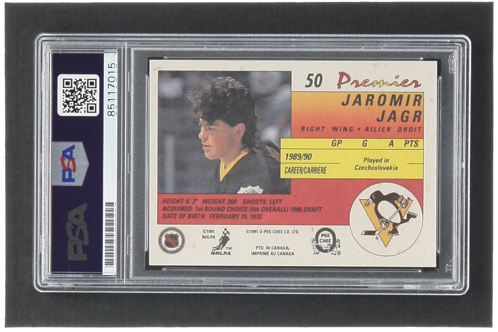 Jaromir Jagr Signed 1990-91 OPC Premier #50 RC (PSA | Auto 10)