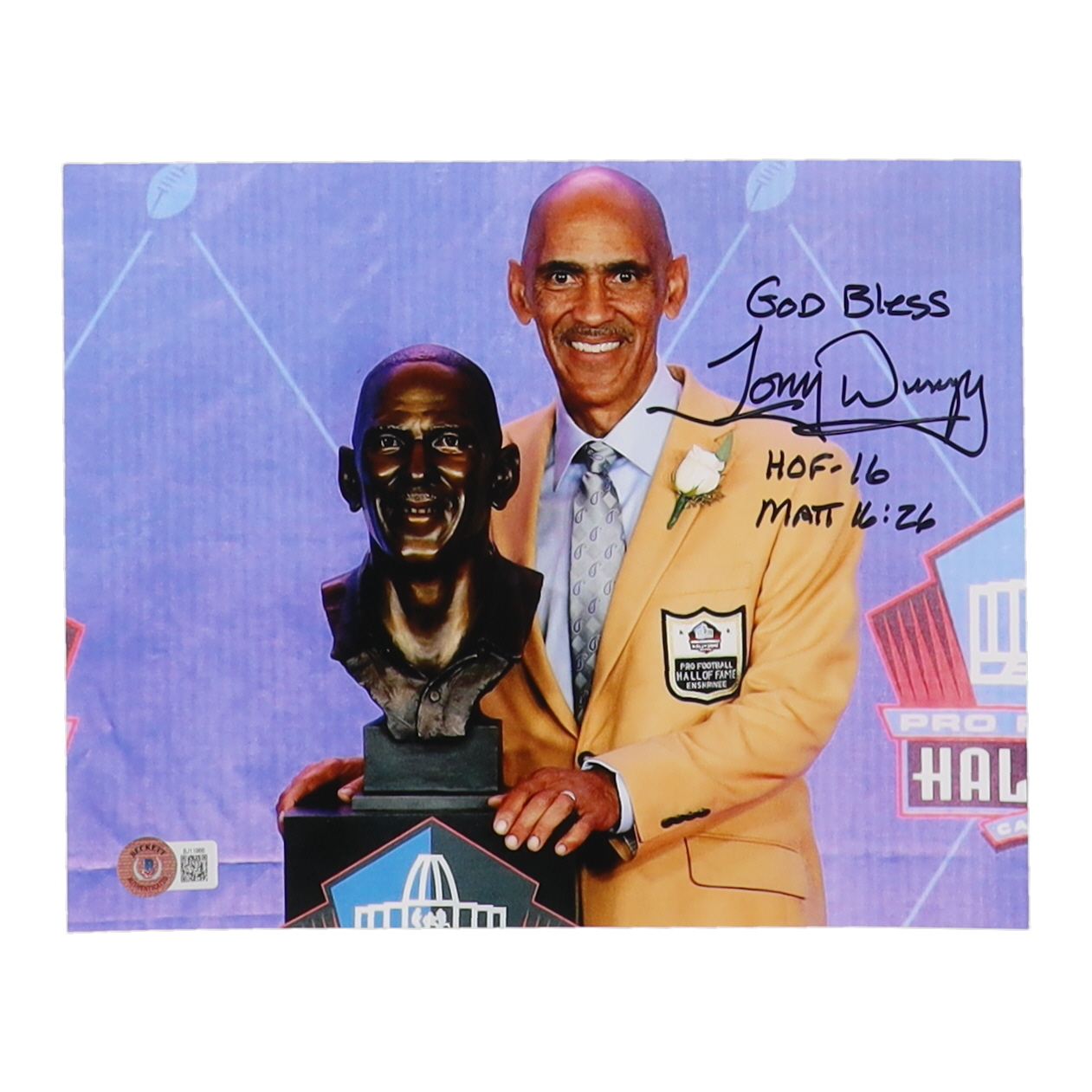 Tony Dungy Signed 8x10 Photo Inscribed "God Bless" & "HOF - 16" (Beckett)