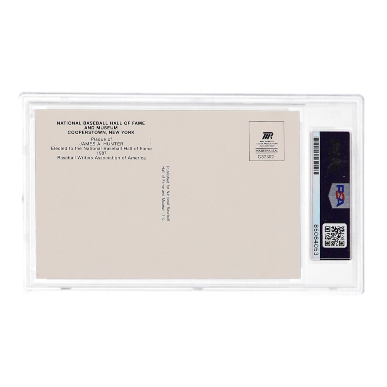 Jim "Catfish" Hunter Signed Hall of Fame Plaque Postcard (PSA)