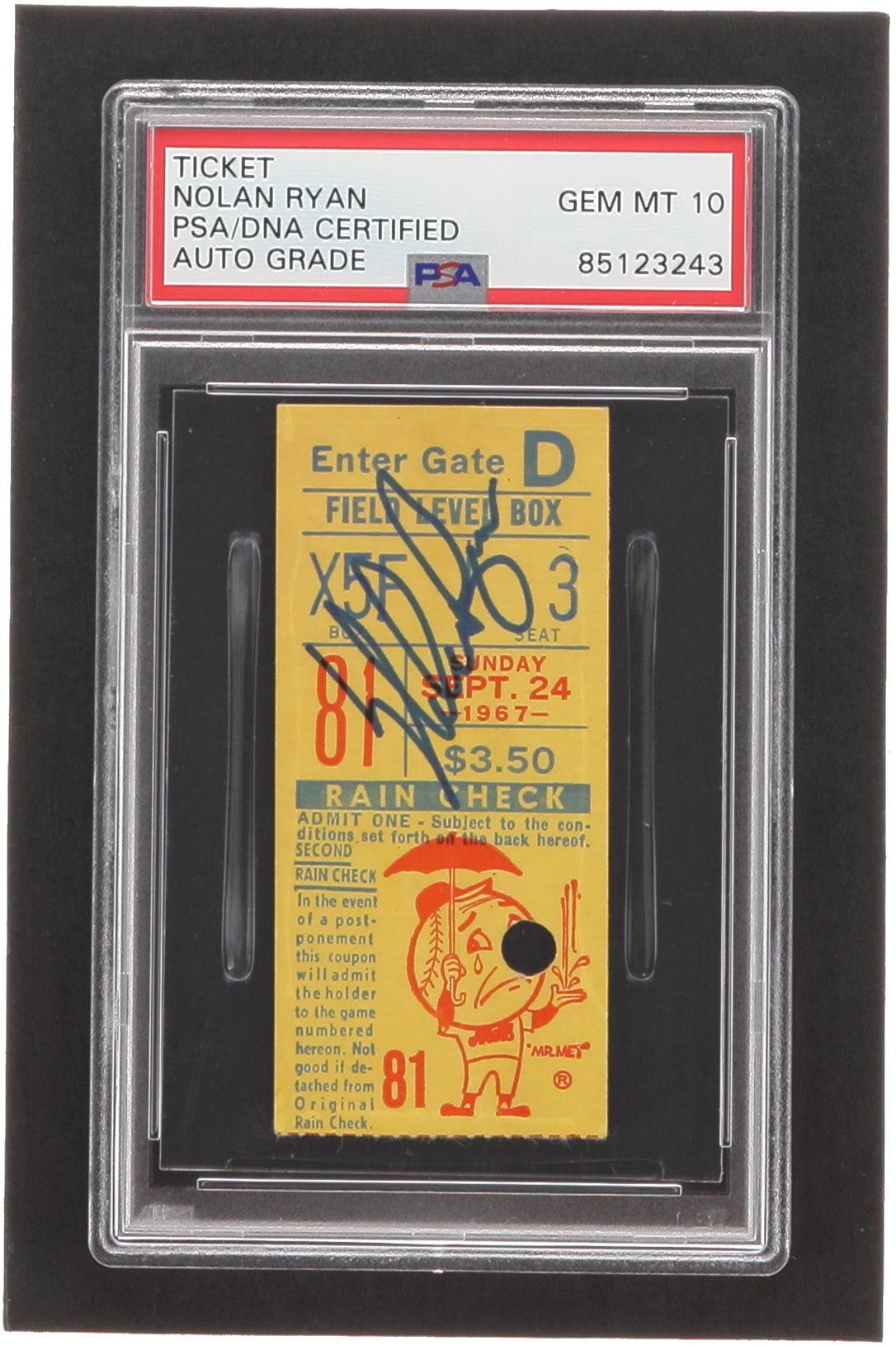 Nolan Ryan Signed 1967 Mets Stadium Ticket Stub (PSA | Auto 10)