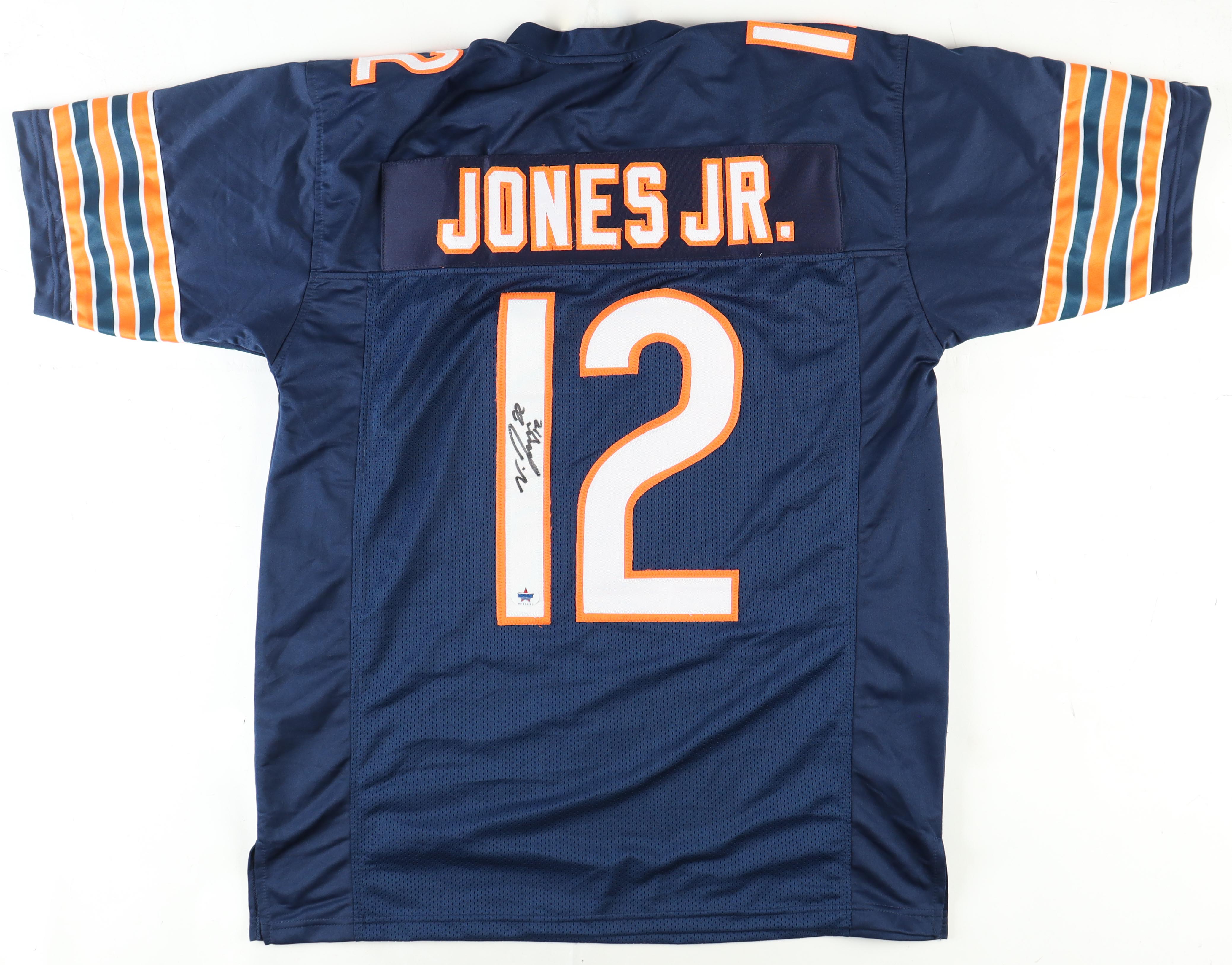 Custom jersey. Everything is sewn on, size XL. Hand-signed by Velus Jones Jr.