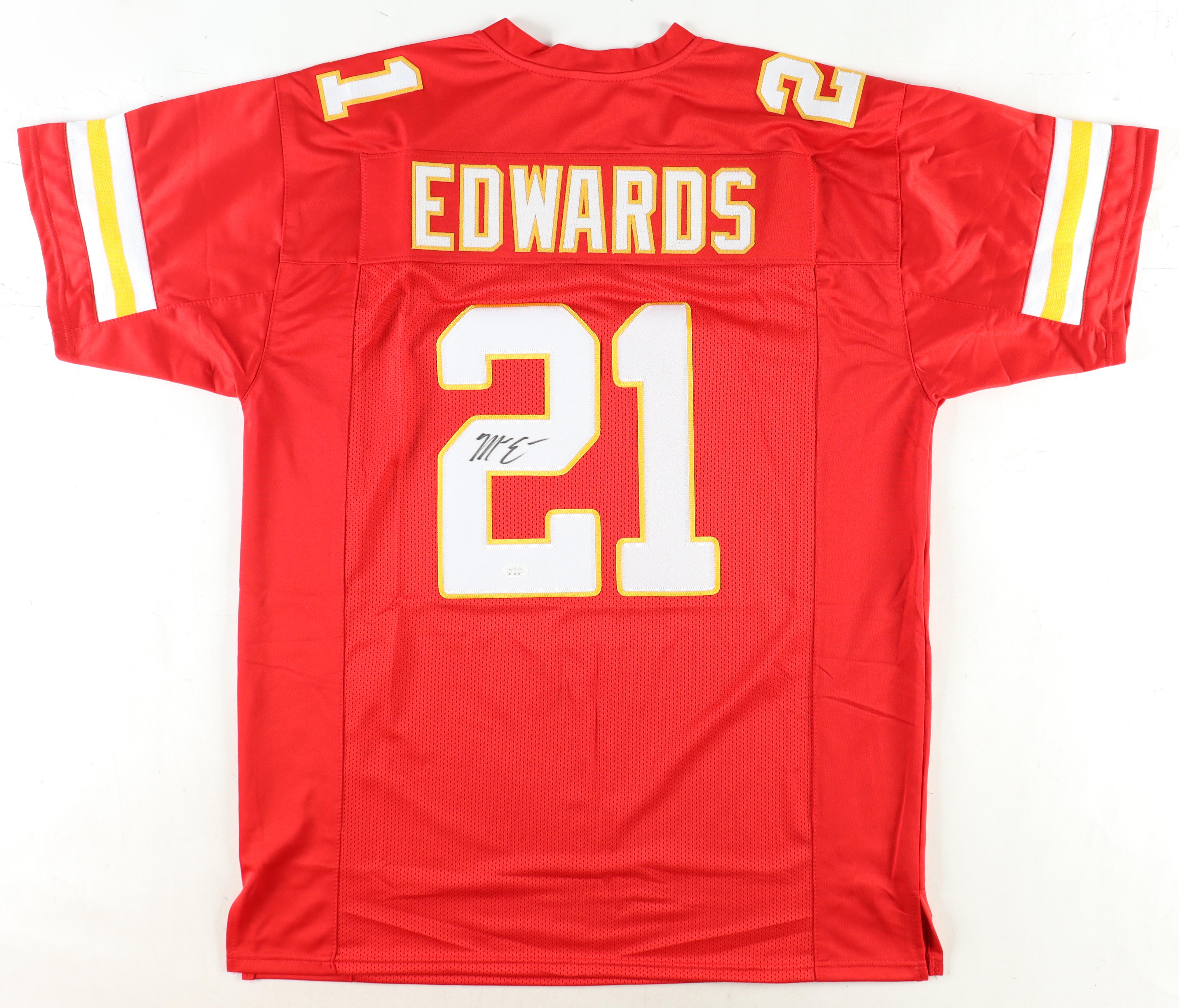 Custom jersey with everything sewn on, size XL. Hand-signed by Mike Edwards.