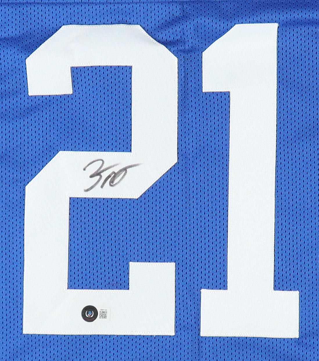 Custom jersey with everything sewn on, size XL. Hand-signed by Zack Moss.