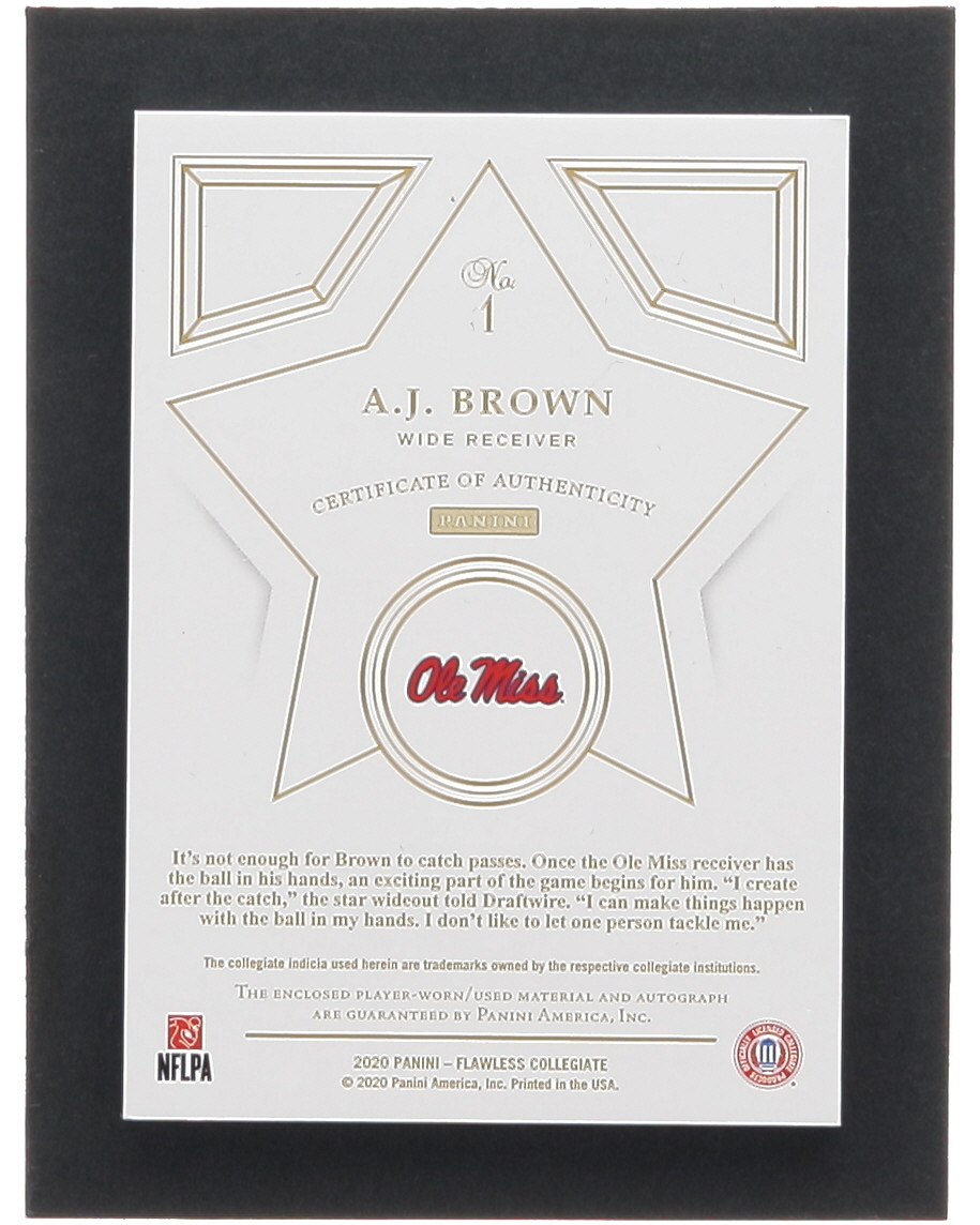 A.J. Brown 2020 Panini Flawless Collegiate Star Swatch Signatures #1 #05/10