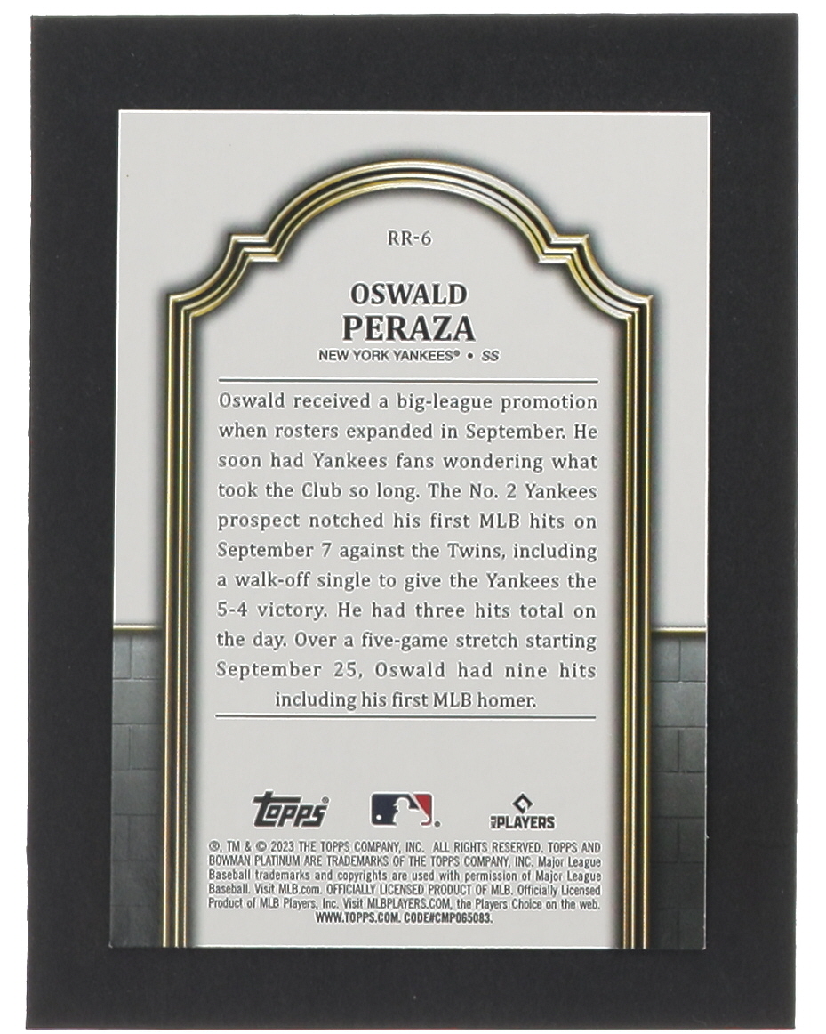 Oswald Peraza 2023 Bowman Platinum Renowned Rookies #RR6 RC