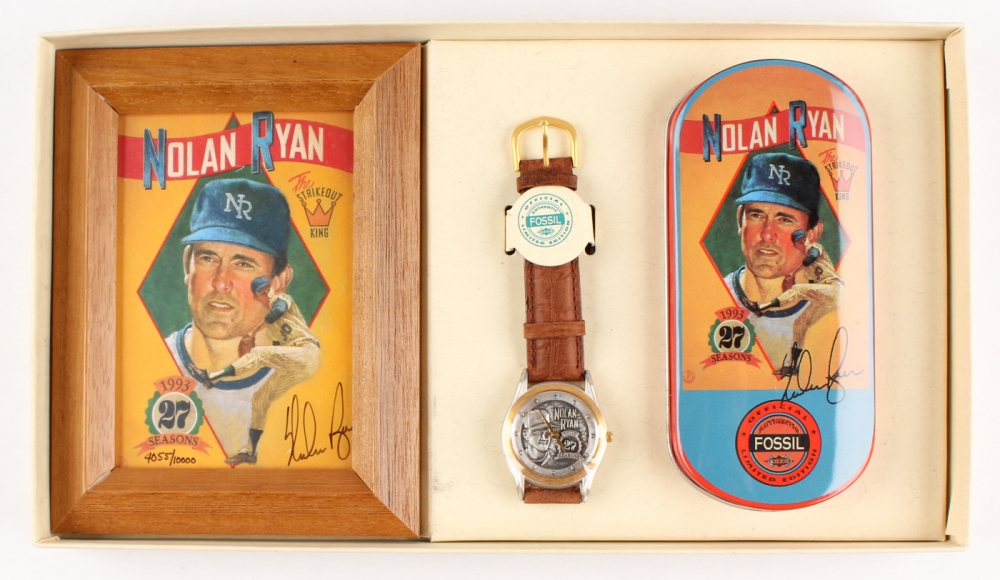 Nolan Ryan Signed LE 1993 Fossil 27th Season Commemorative Collectors Watch Set (JSA COA)