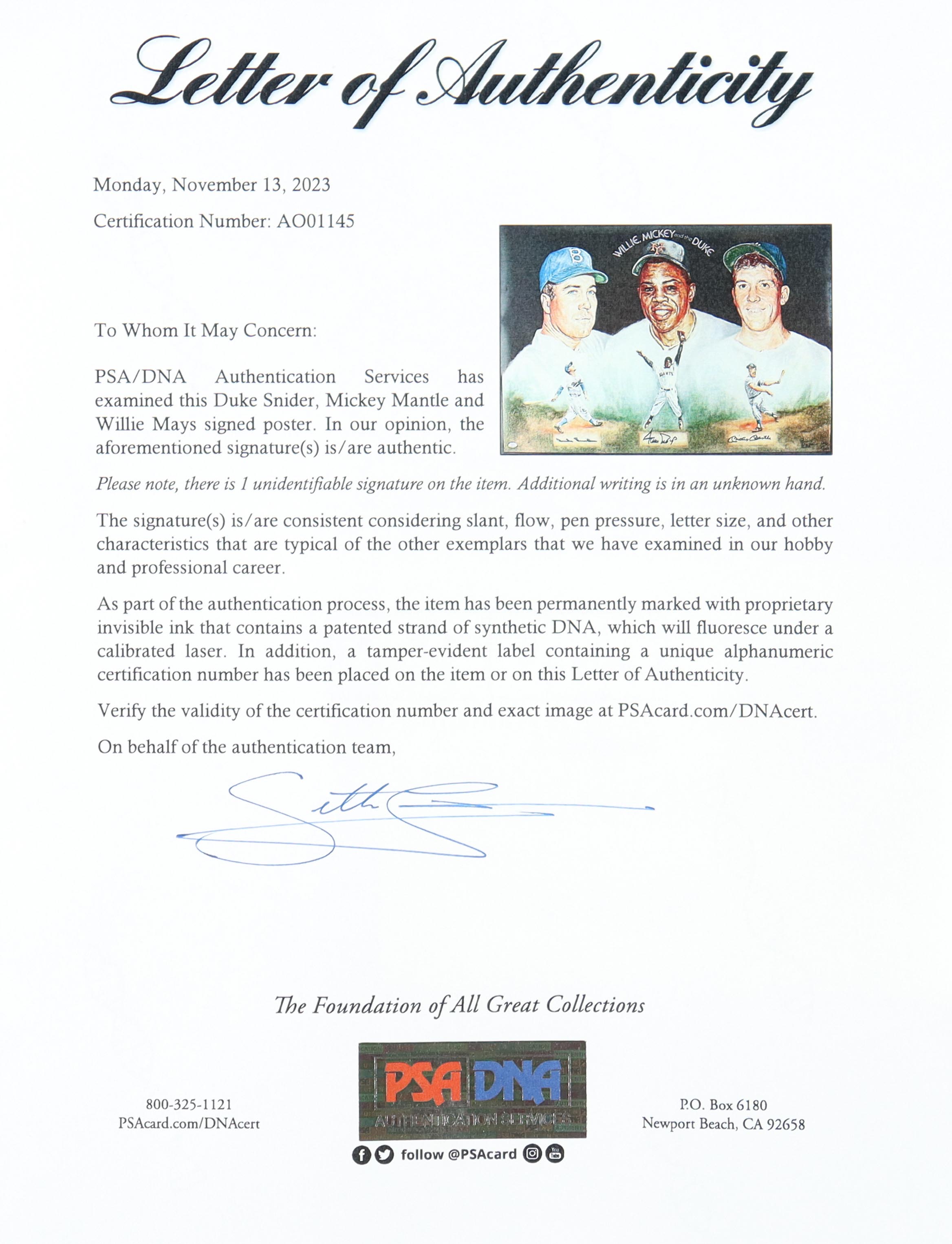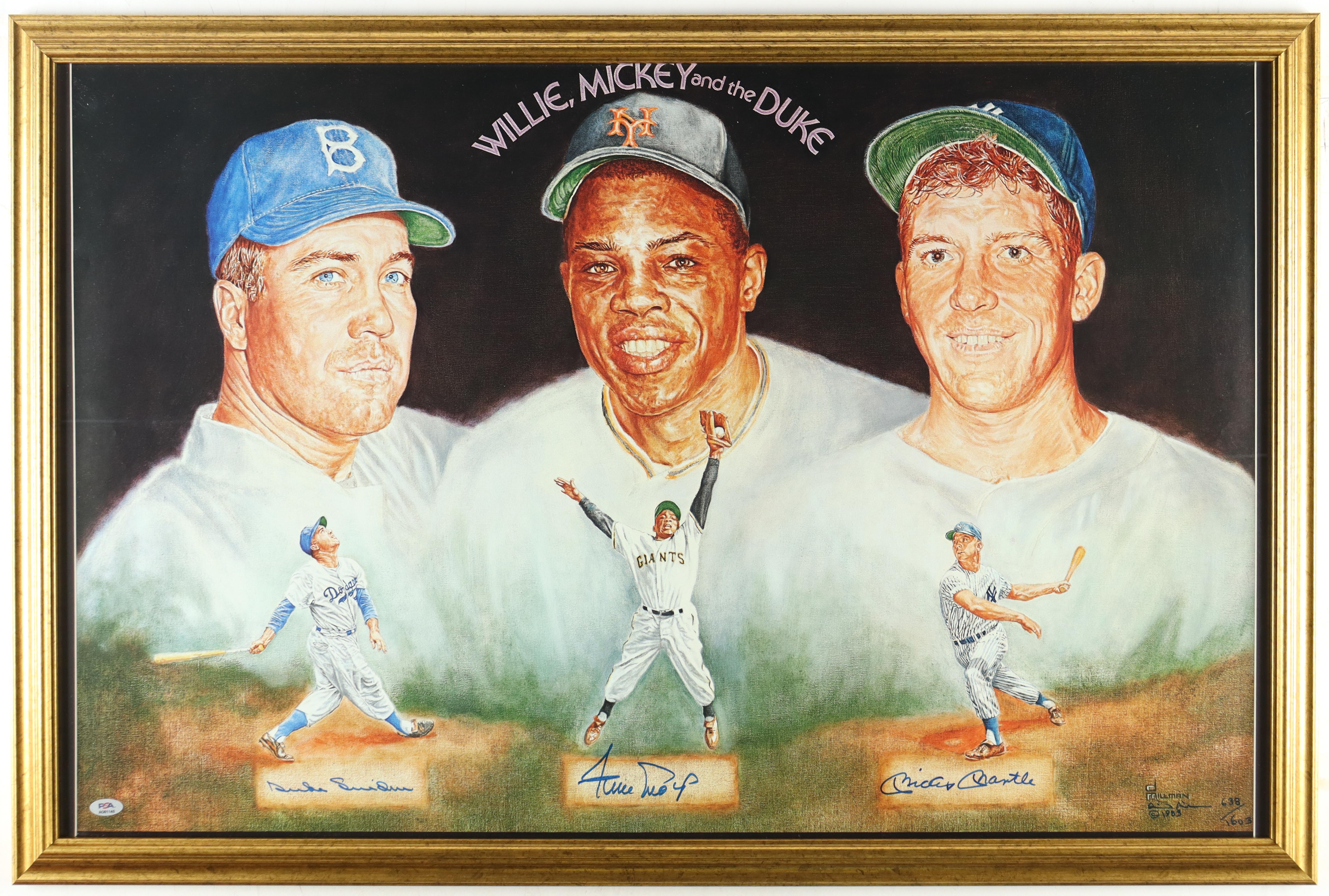Mickey Mantle, Willie Mays & Duke Snider Signed LE Custom Framed Art Print Display #638/1603 (PSA)