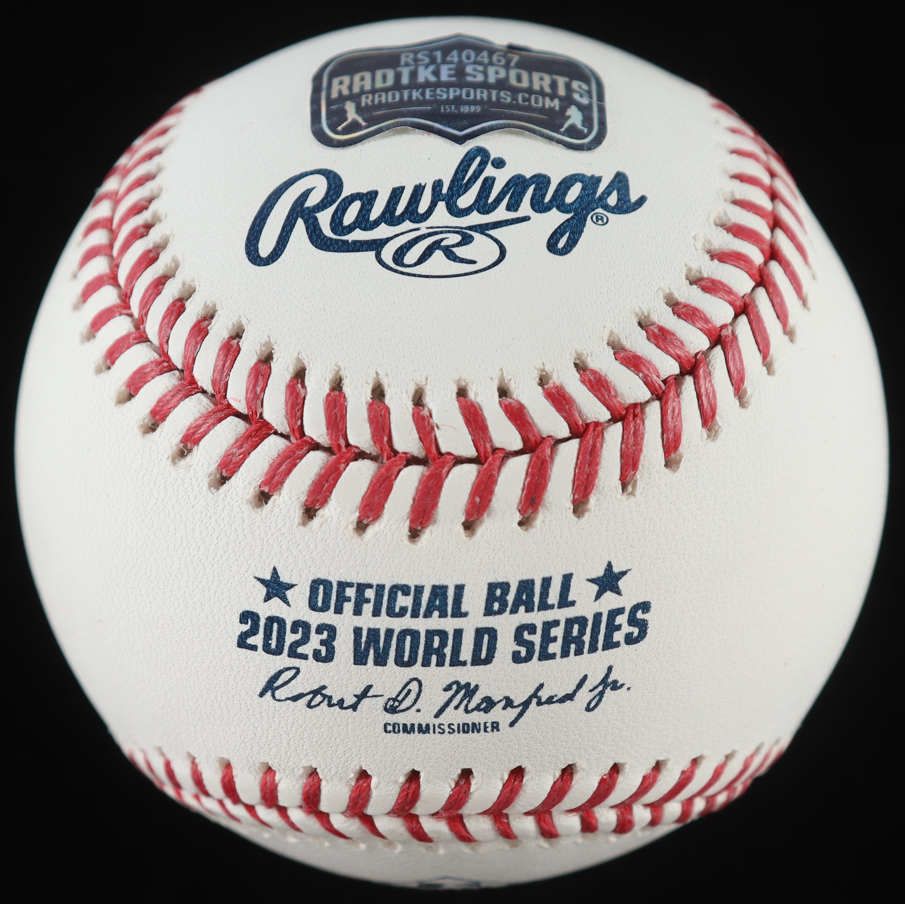 Rawlings Official 2023 World Series baseball. Hand-signed and inscribed by Will Smith (Houston Astros).