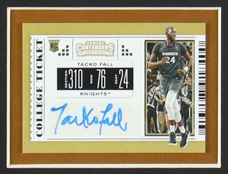 Display measures approximately 16" x 17" in size. Features a photo and a 2019 Panini Contenders Draft Picks Tacko Fall Auto RC.