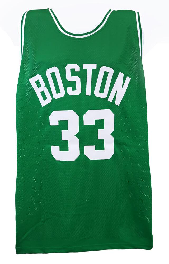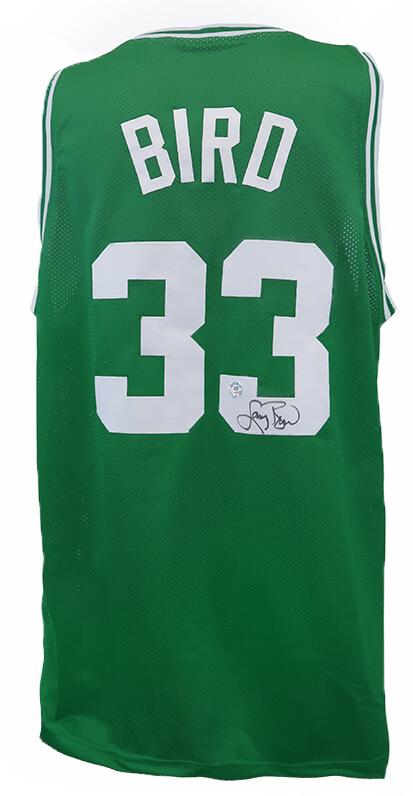 Custom style jersey with everything sewn on, size XL. Hand-signed by Larry Bird (Boston Celtics).