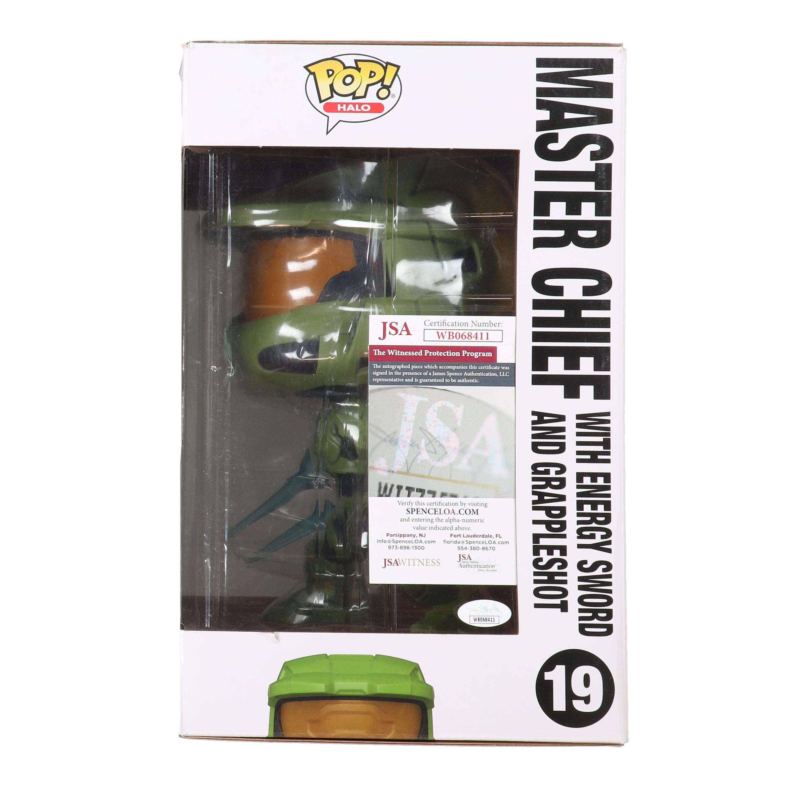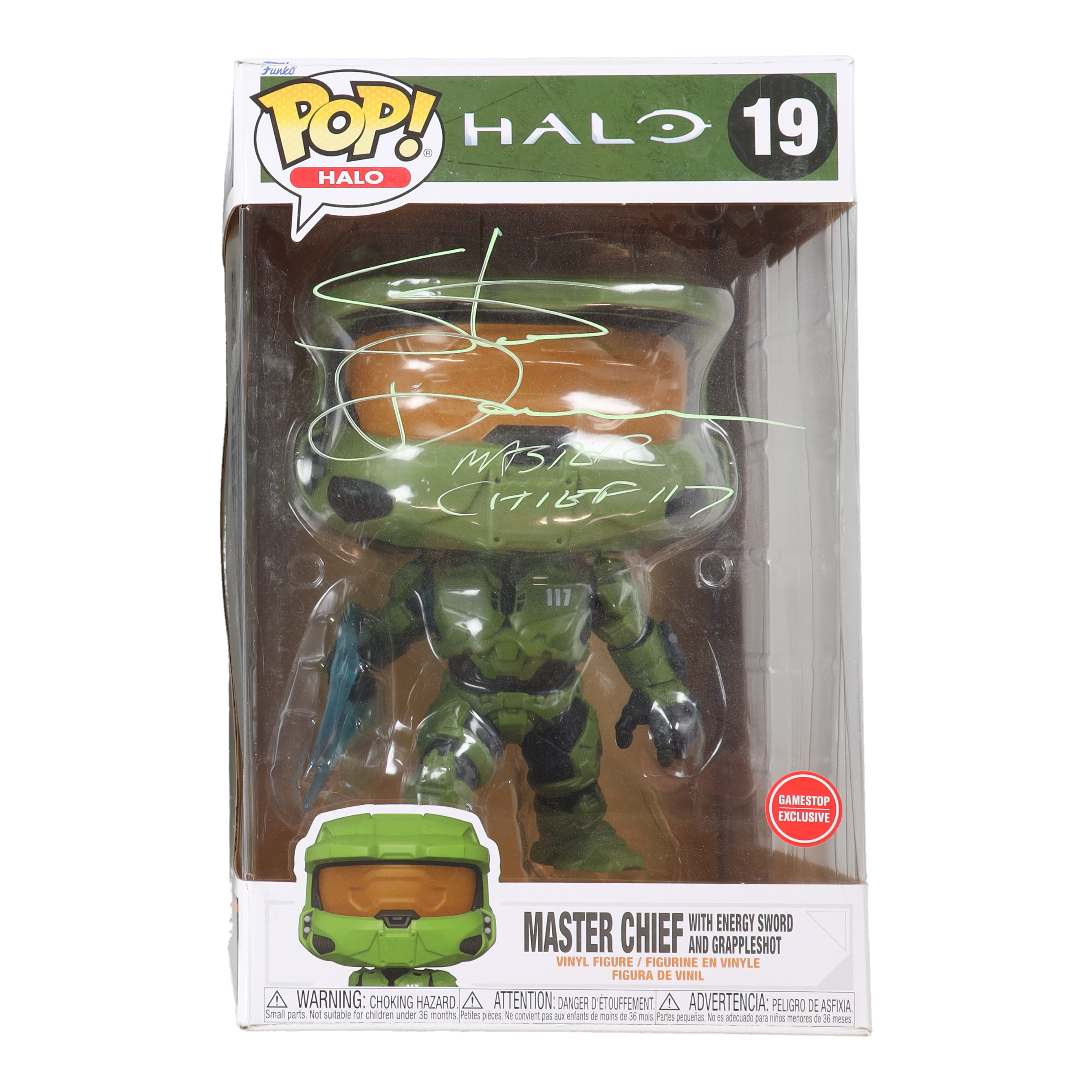 Steve Downes Signed "Halo" #19 Master Chief with Energy Sword and Grappleshot JUMBO Funko Pop! Vinyl Figure Inscribed "Master Chief 117" (JSA)