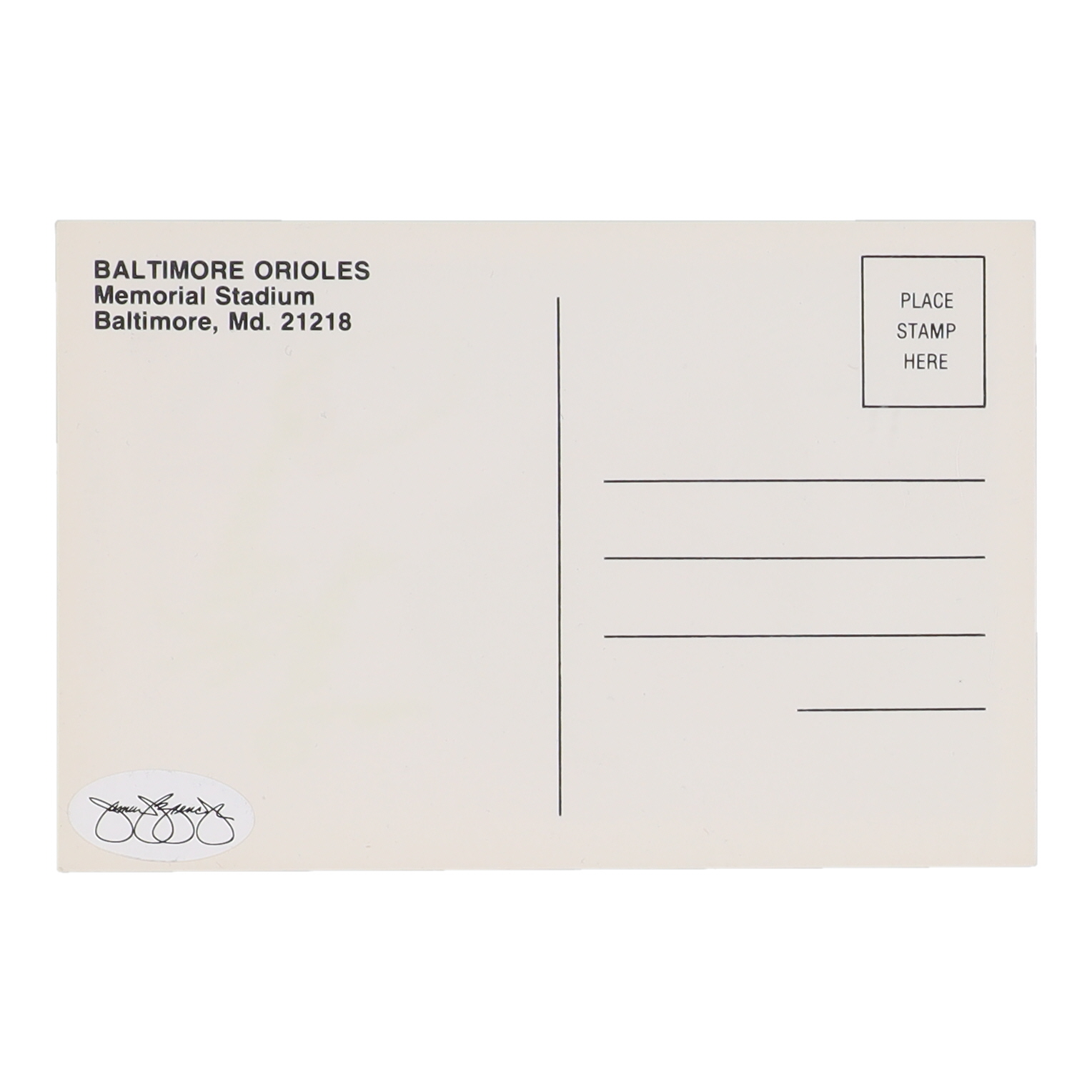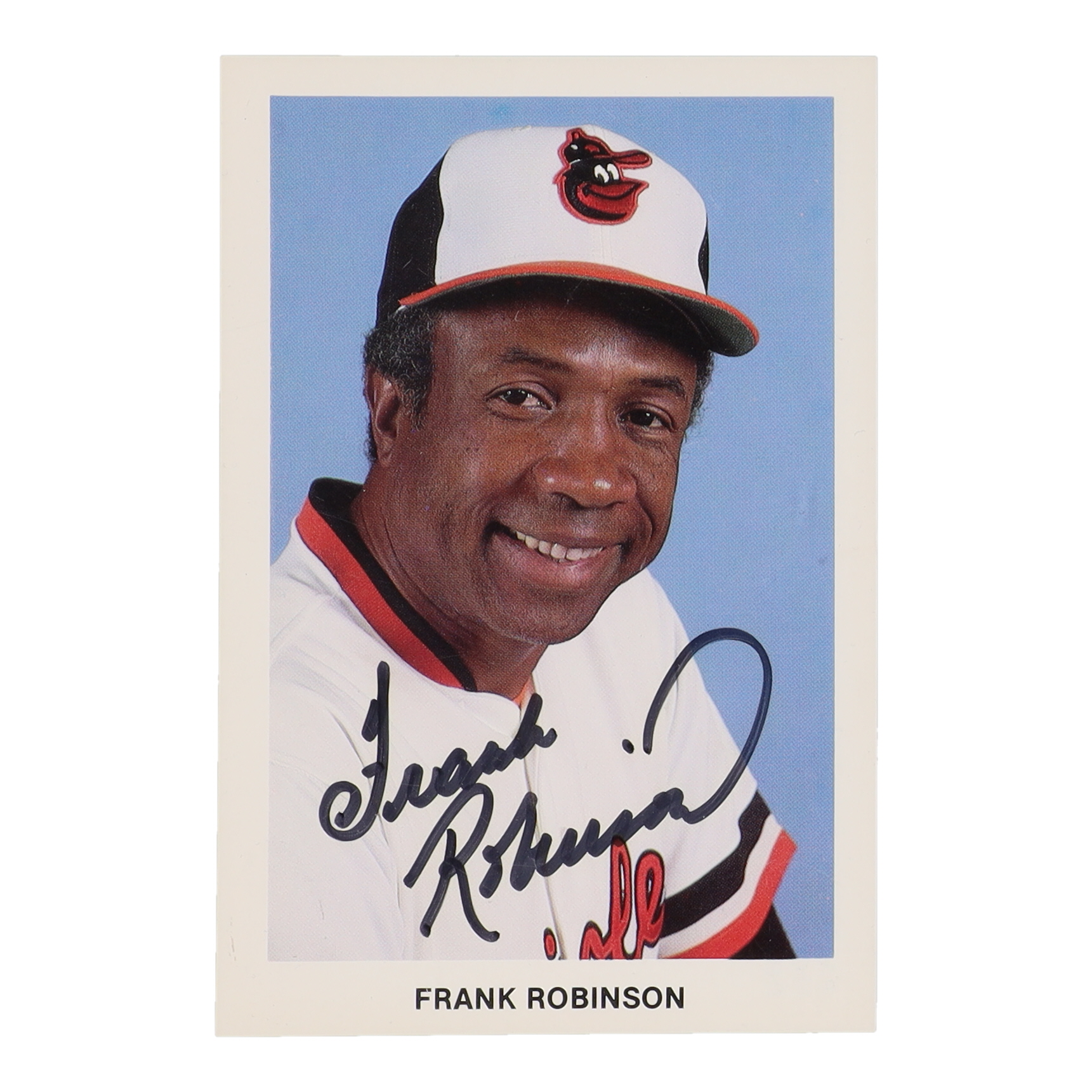 Postcard has been hand-signed by Frank Robinson (D. 2019, Baltimore Orioles, HOF).