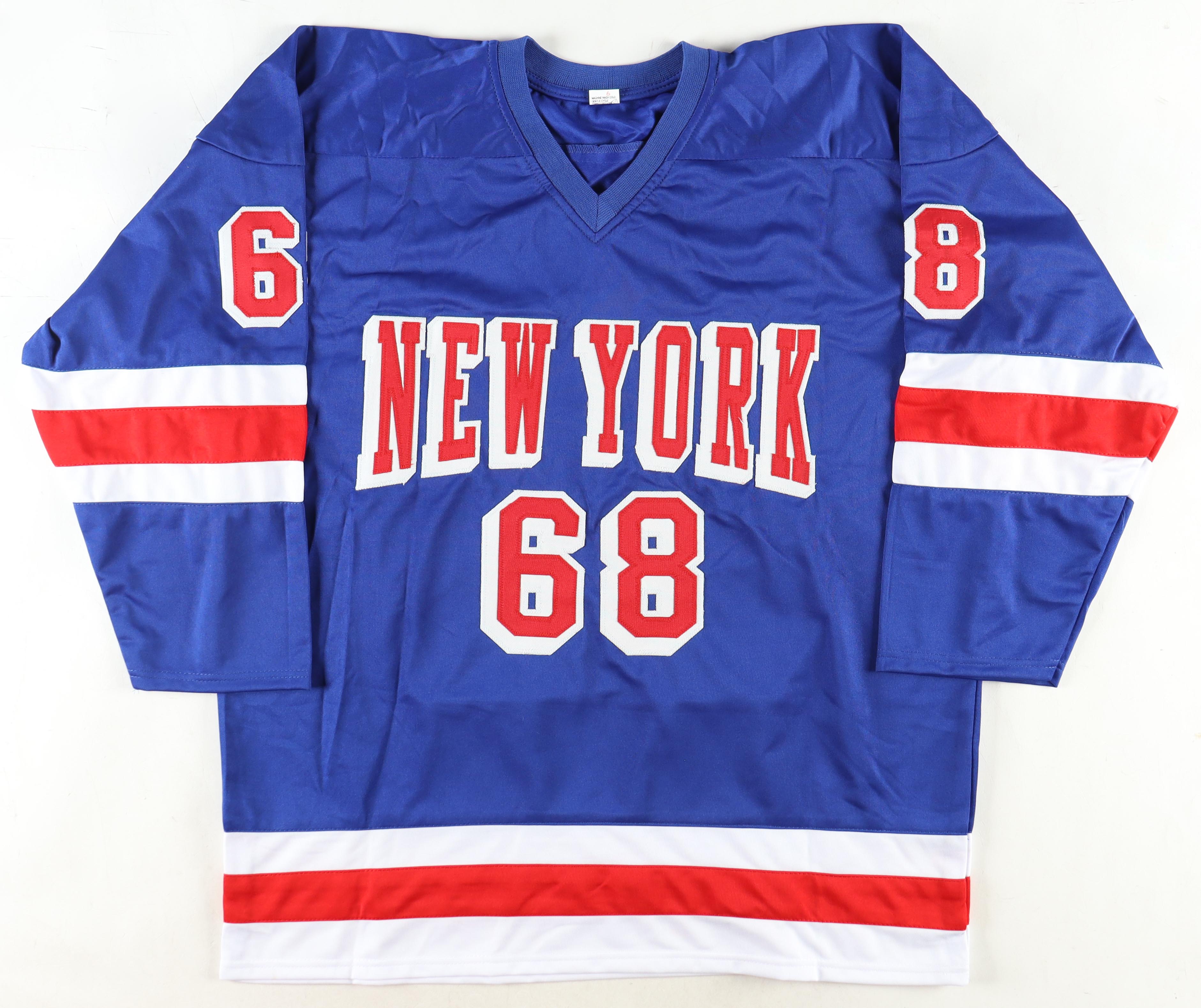 Custom jersey with everything sewn on, size XL. Hand-signed by Jaromir Jagr.