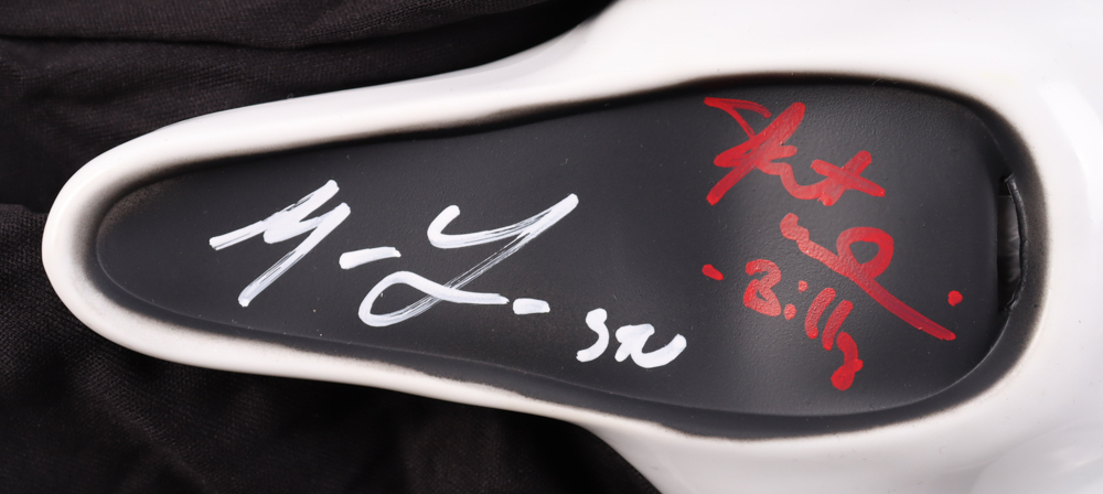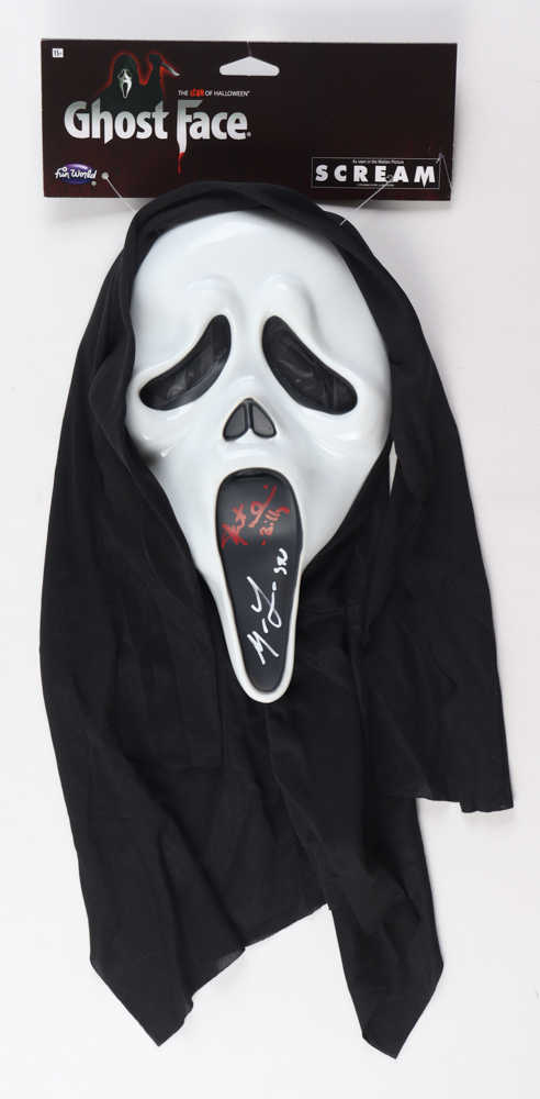 "Scream" Ghostface mask has been hand-signed and inscribed by Matthew Lillard (Stu Macher) and Skeet Ulrich (Billy).