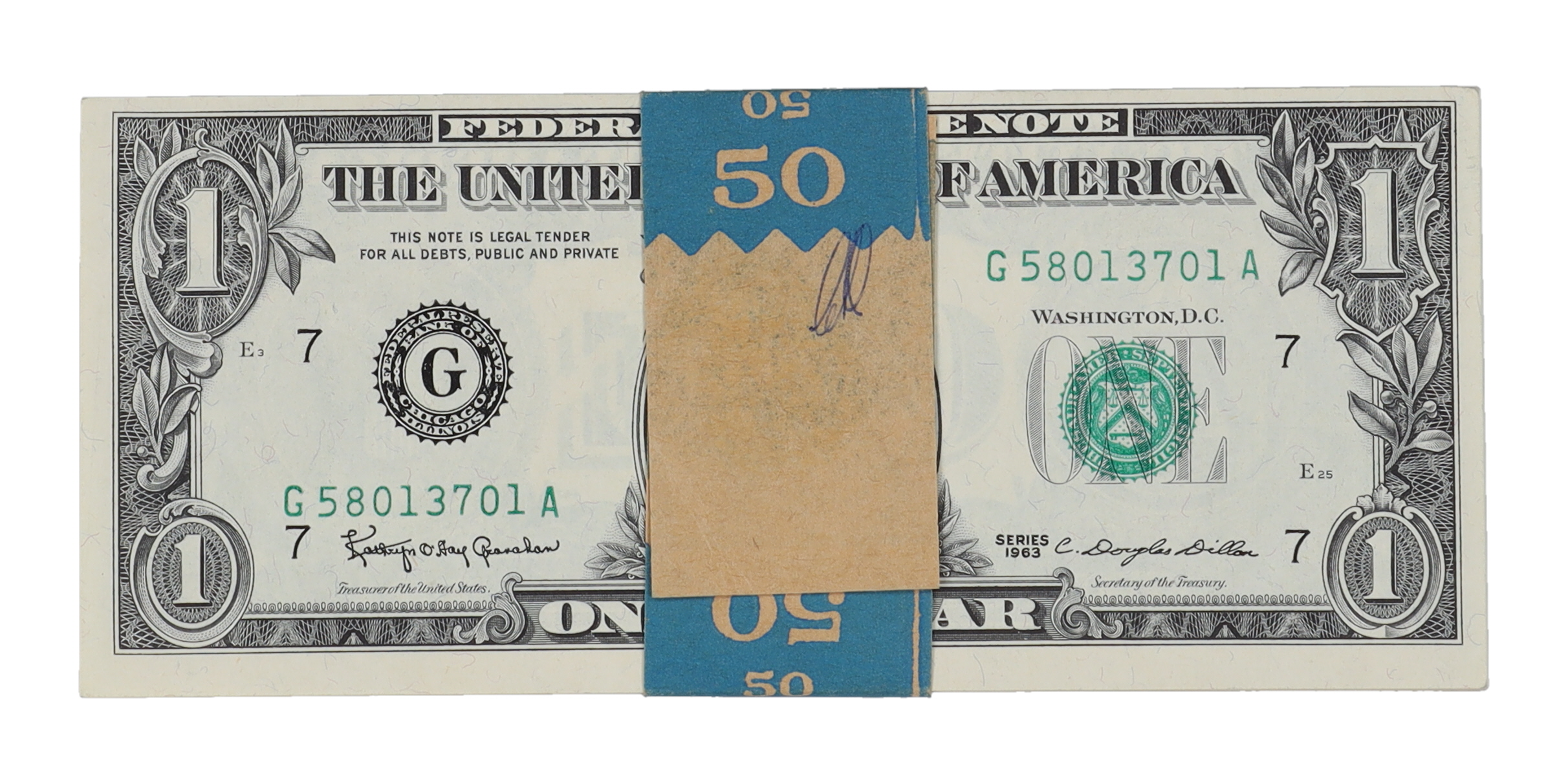 1963 $1 One Dollar U.S. Bank Note Pack of (50) Bills