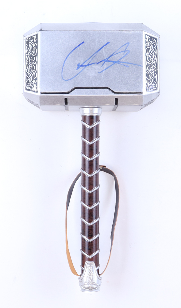 Hammer replica measures approximately 16" in length and has been hand-signed by Chris Hemsworth. Please note, there is scuffing on the replica hammer.