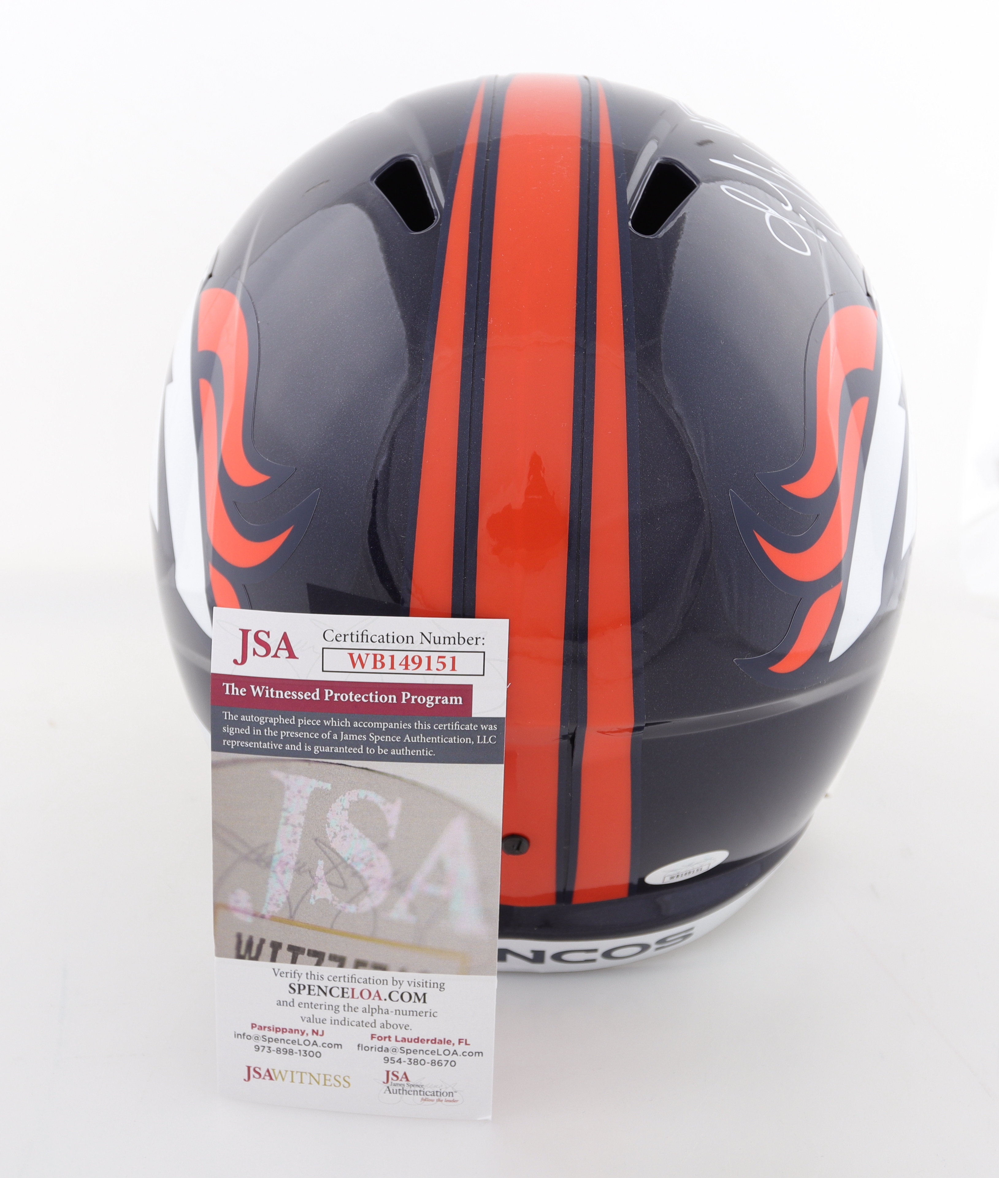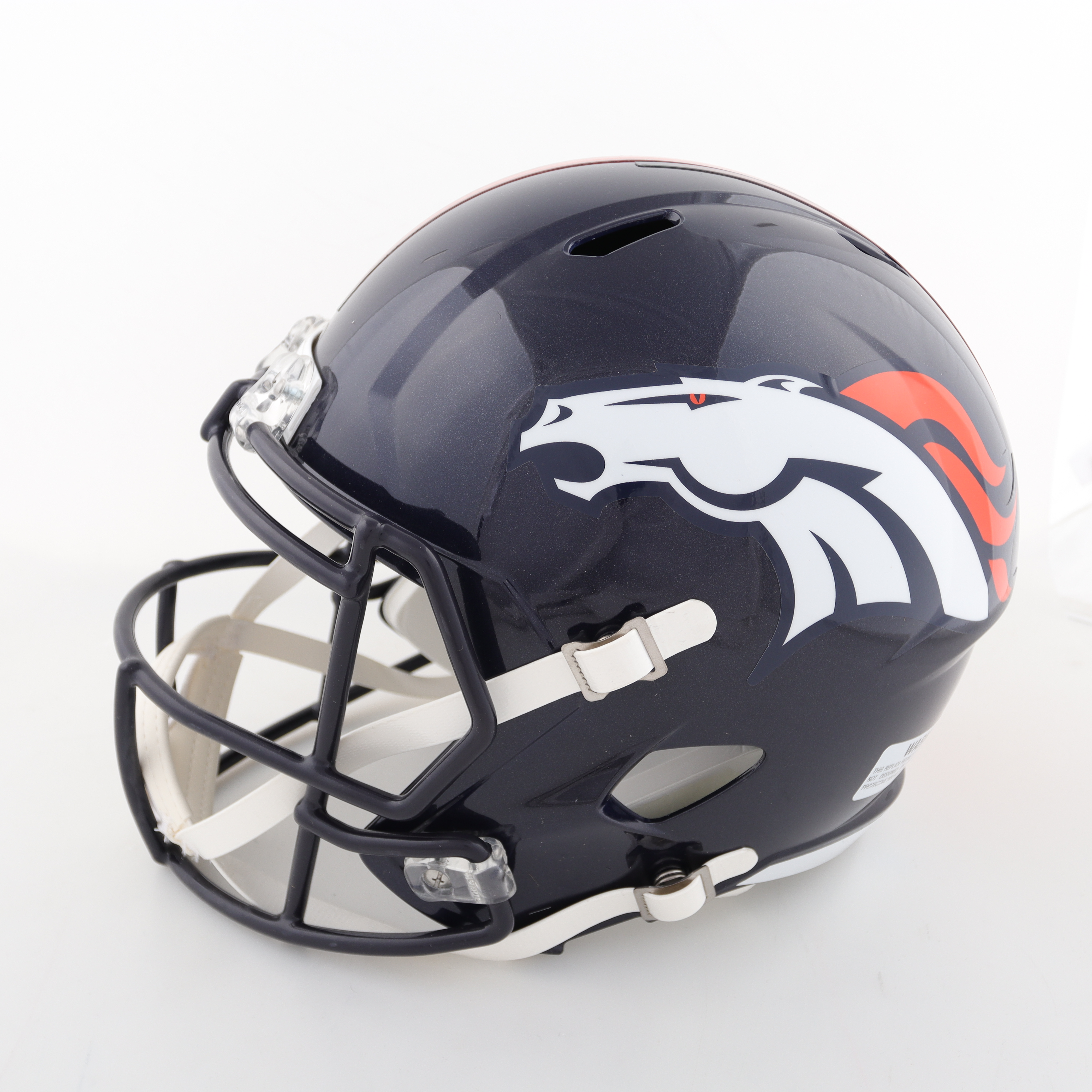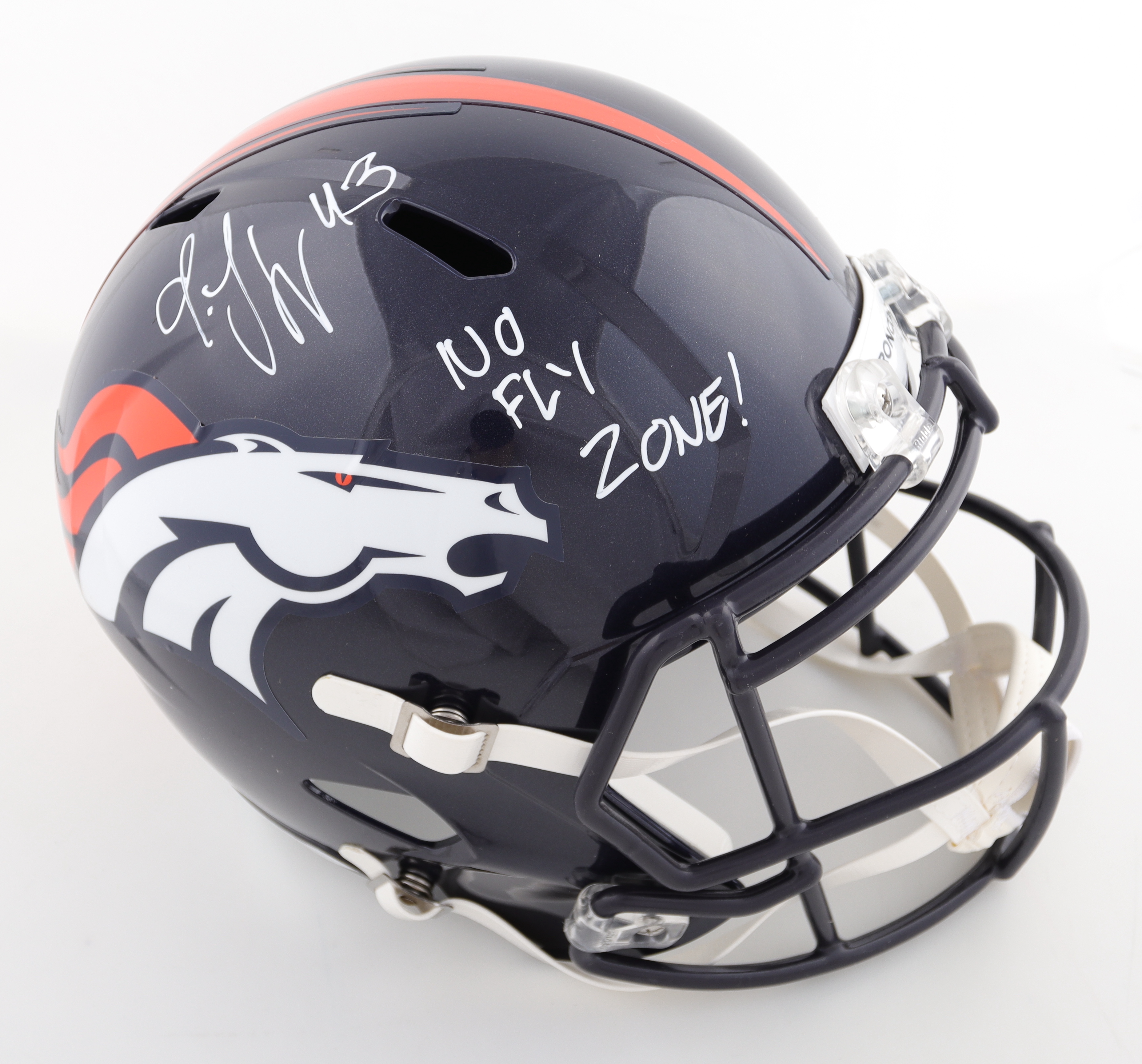 Riddell Denver Broncos full-size replica speed helmet. Has been hand-signed by T. J. Ward.