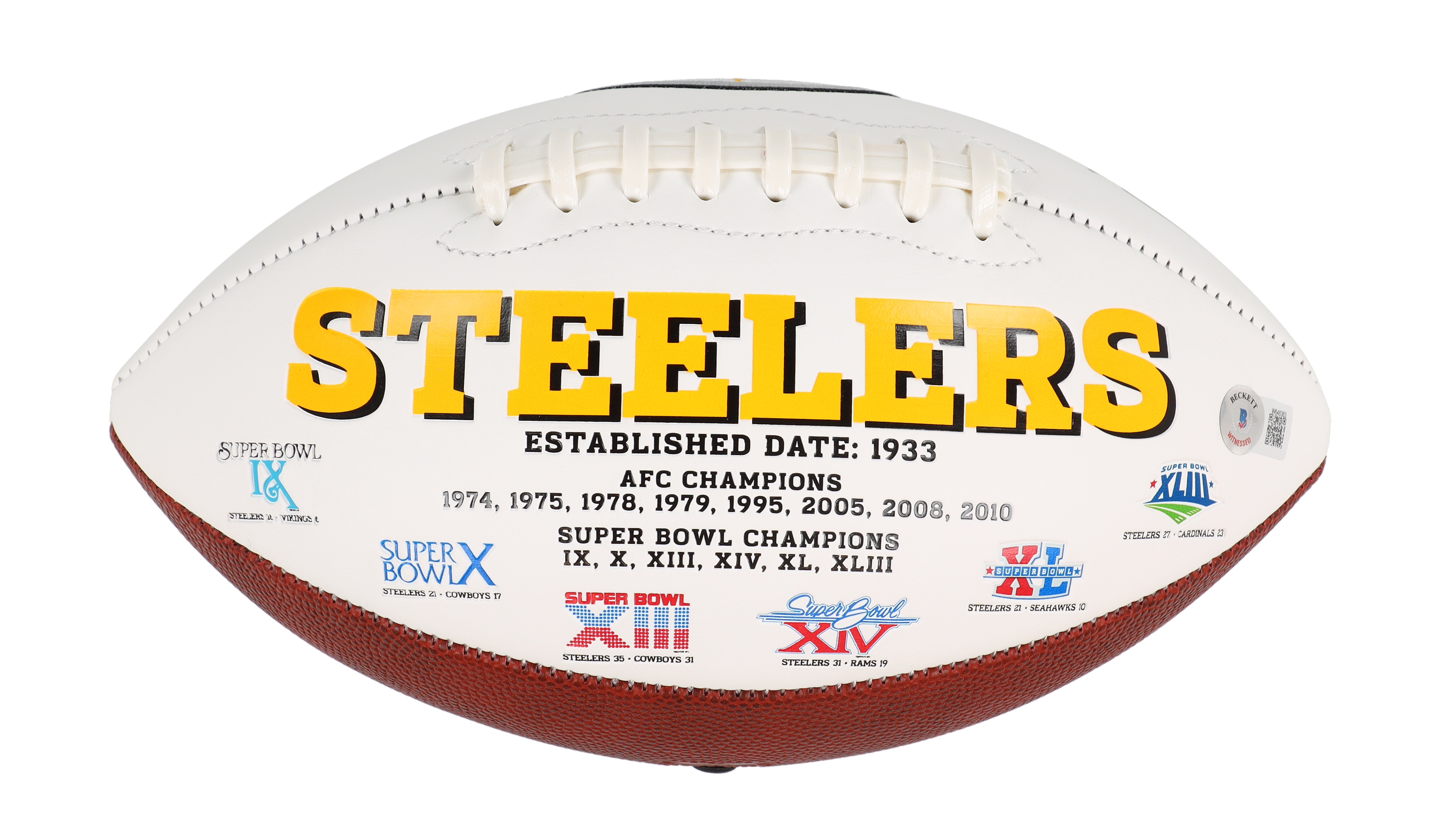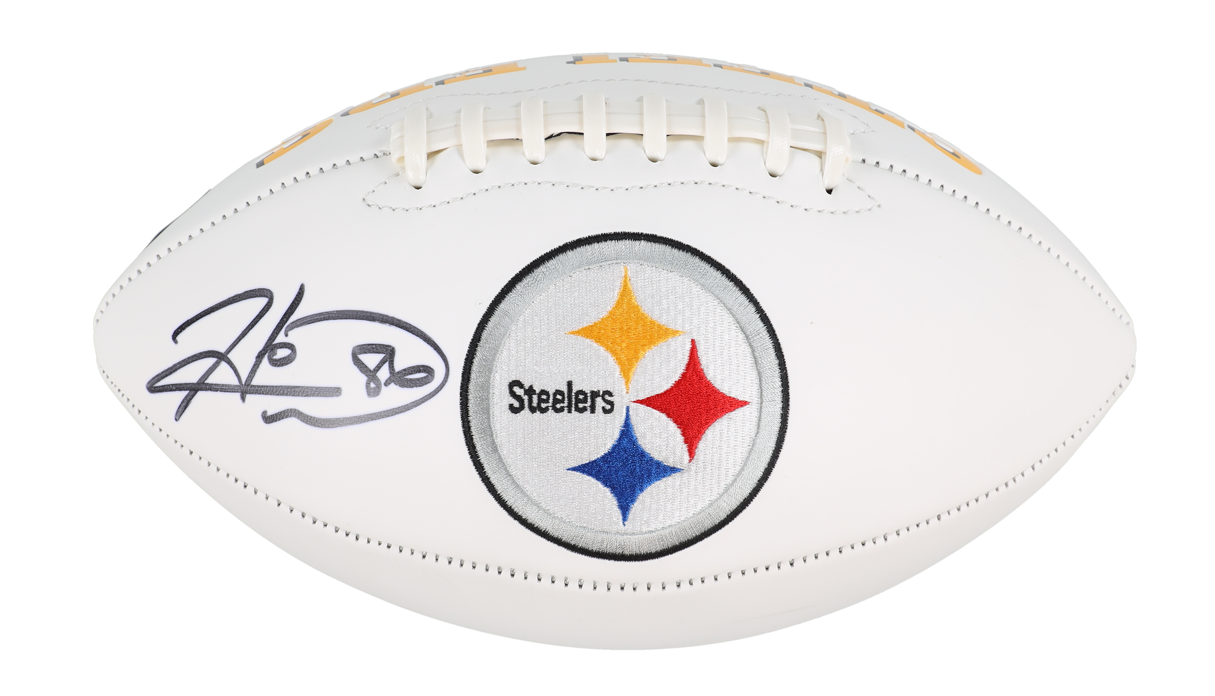 Pittsburgh Steelers logo football has been hand-signed by Hines Ward.