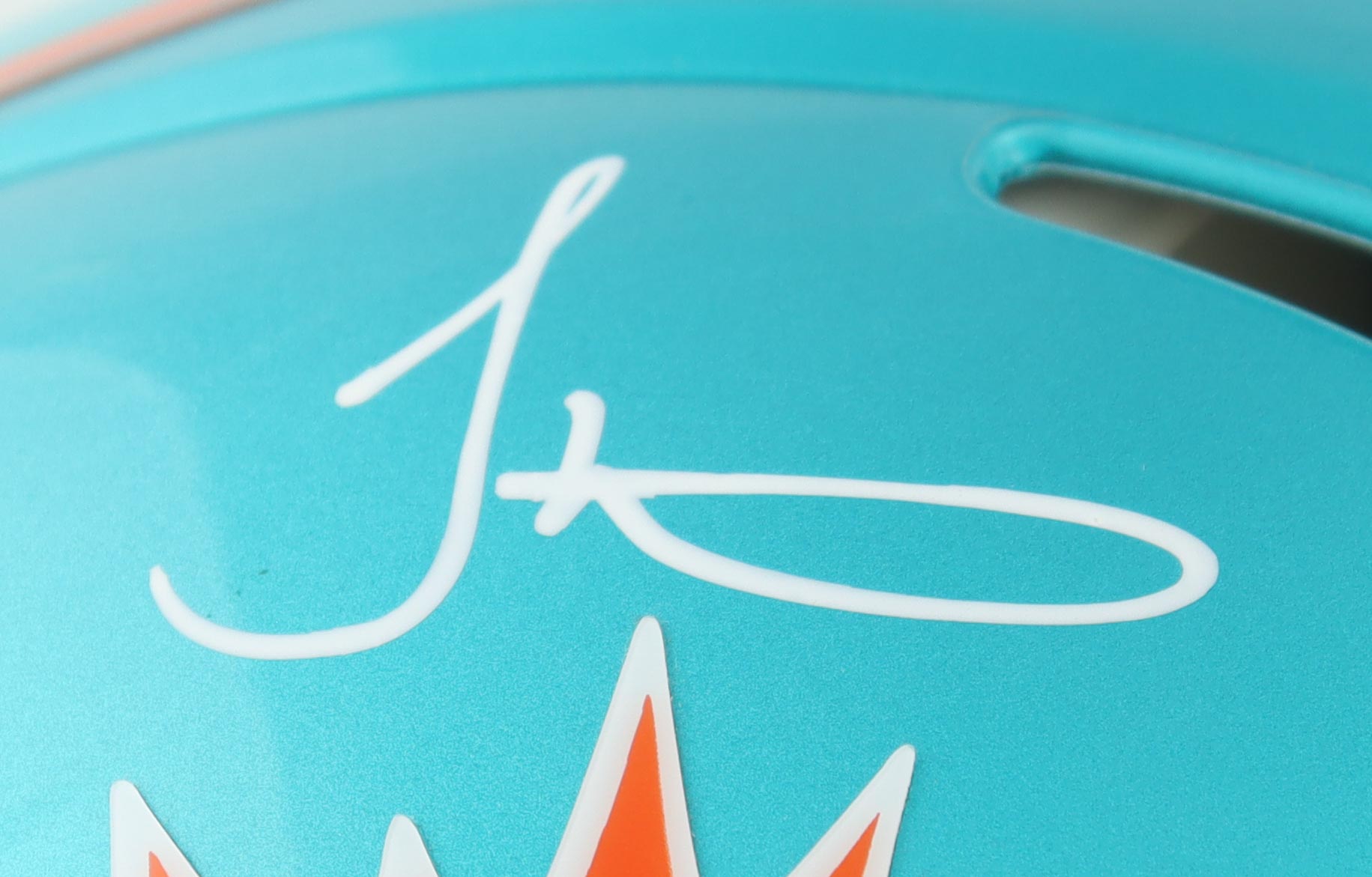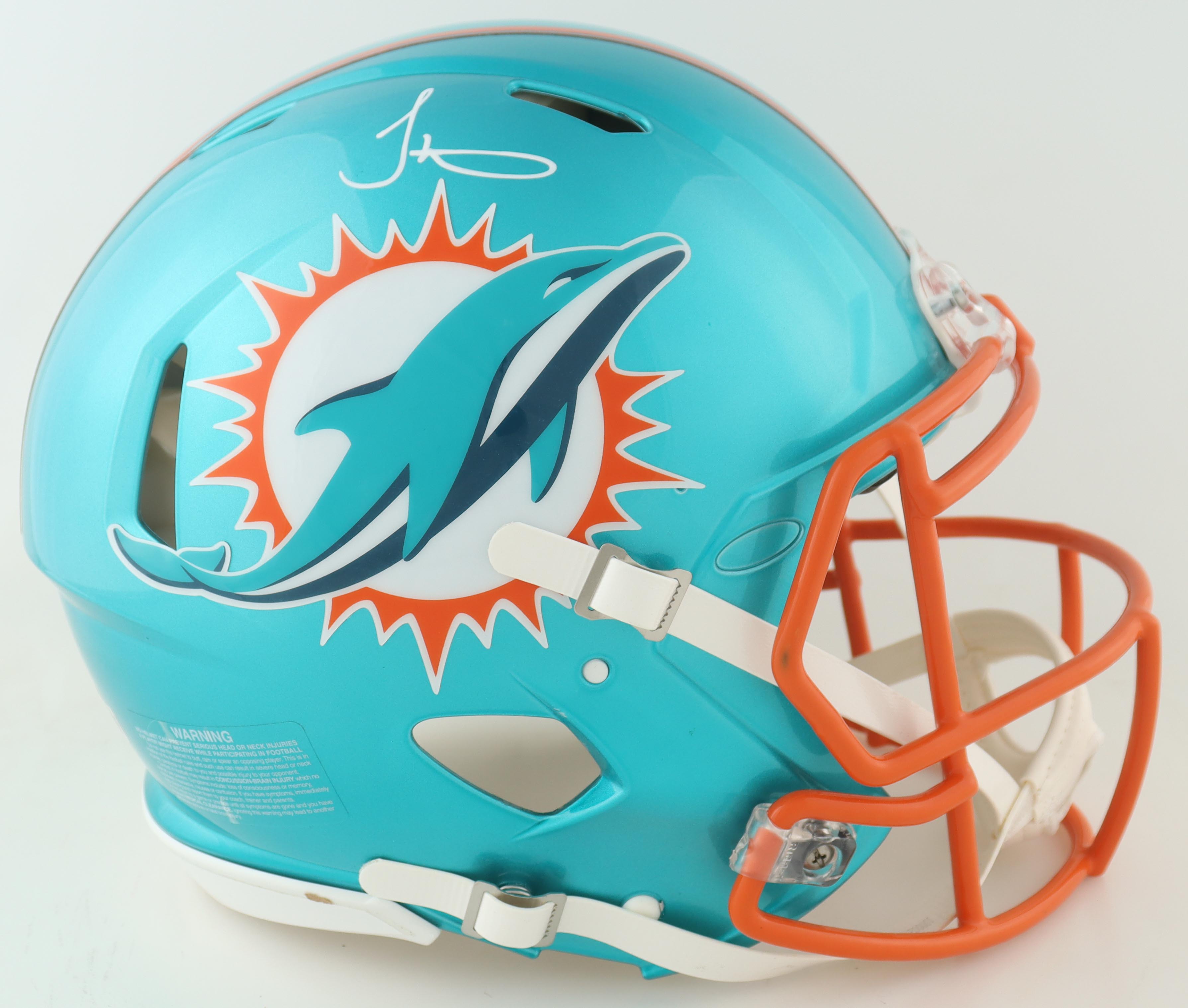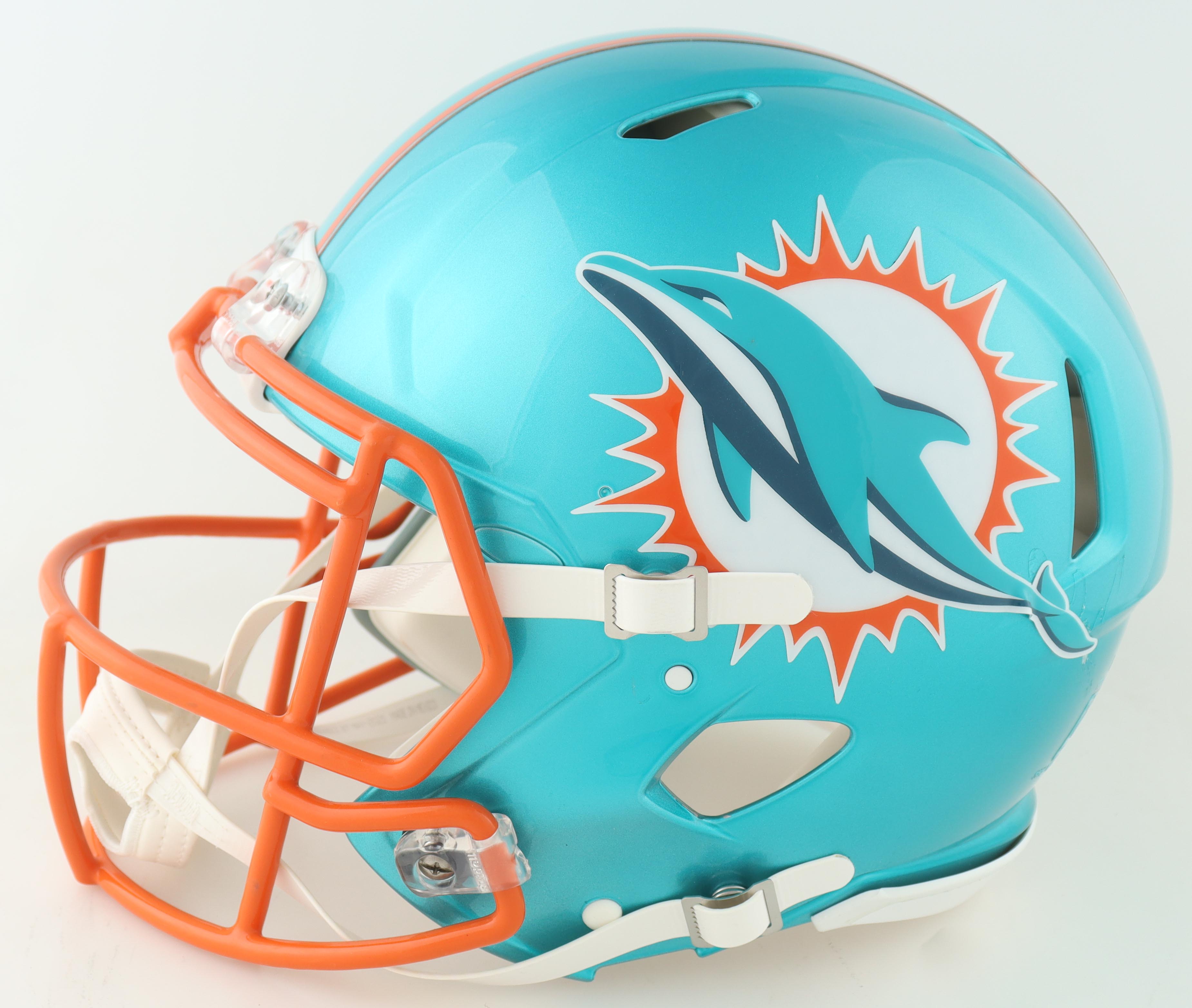 Riddell Miami Dolphins full-size authentic on-field flash alternate speed helmet. Hand-signed by Tyreek Hill.
