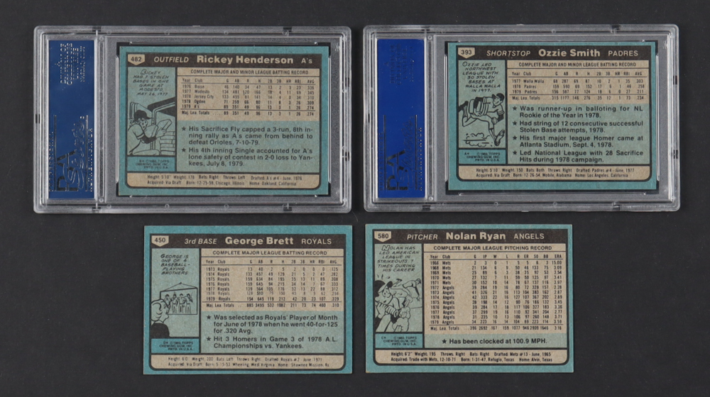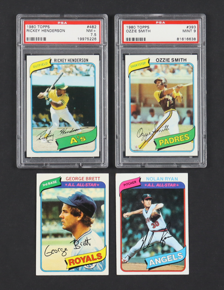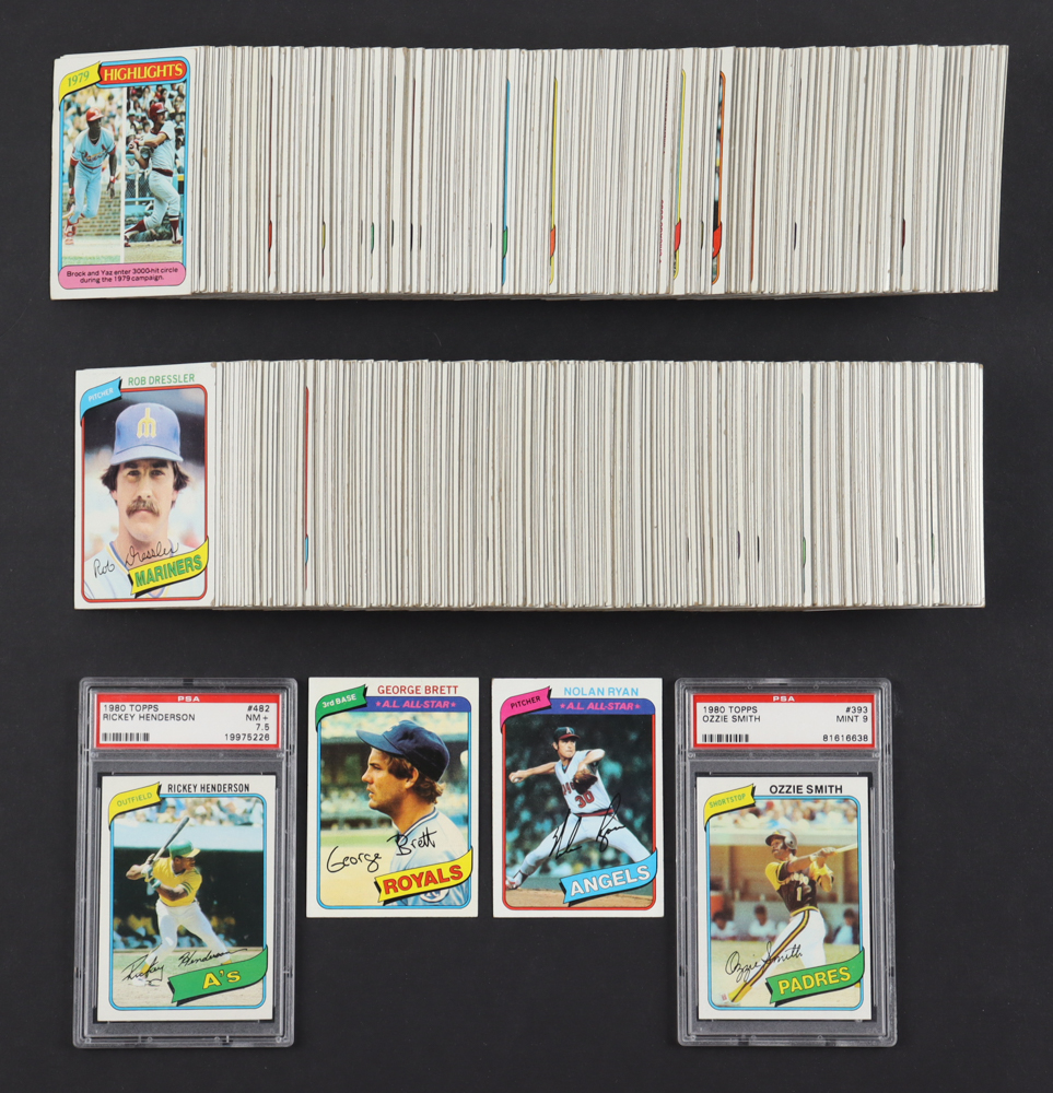 1980 Topps Baseball Complete Set of (726) Cards with Ozzie Smith #393 (PSA 9), Rickey Henderson #482 RC (PSA 7.5), George Brett #450, Nolan Ryan #580