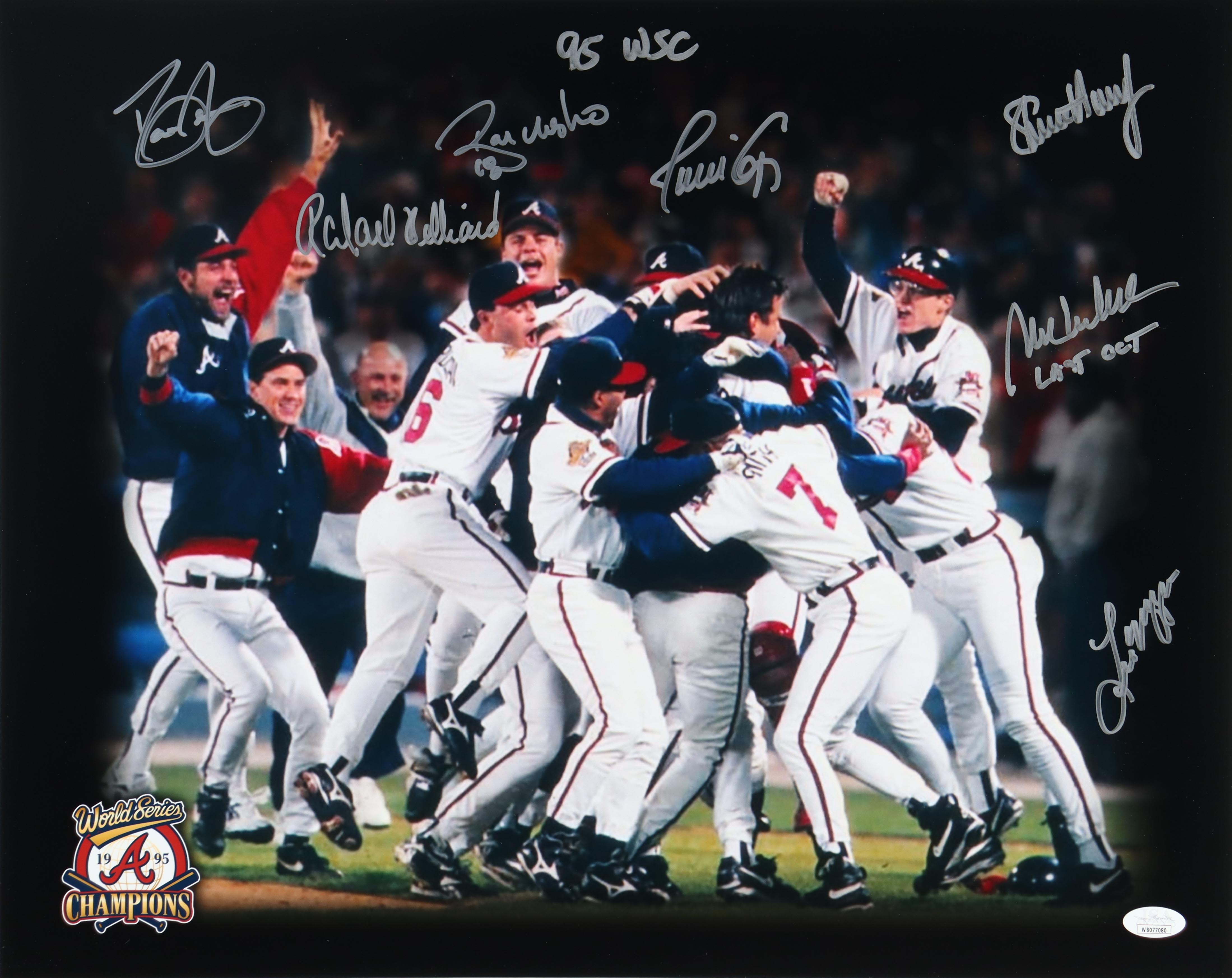 Atlanta Braves 1995 World Series 16x20 Photo Signed by (7) With David Justice, Rafael Belliard, Ryan Klesko, Javier Lopez (JSA)