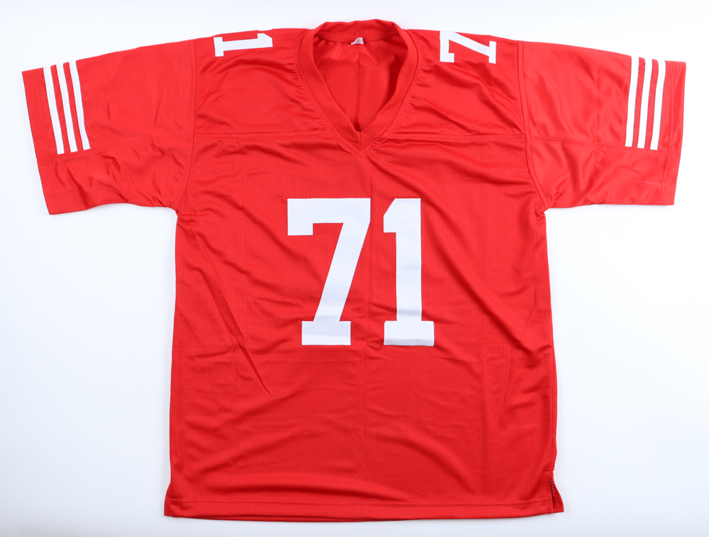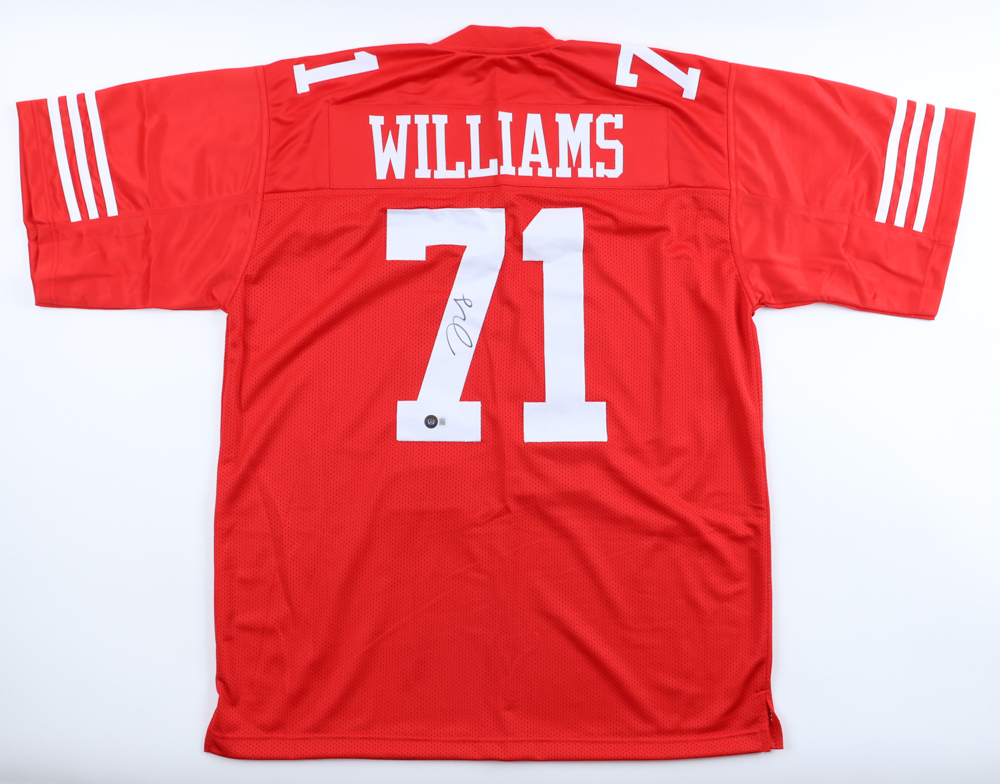 Custom jersey with everything sewn on, size XL. Hand-signed by Trent Williams.