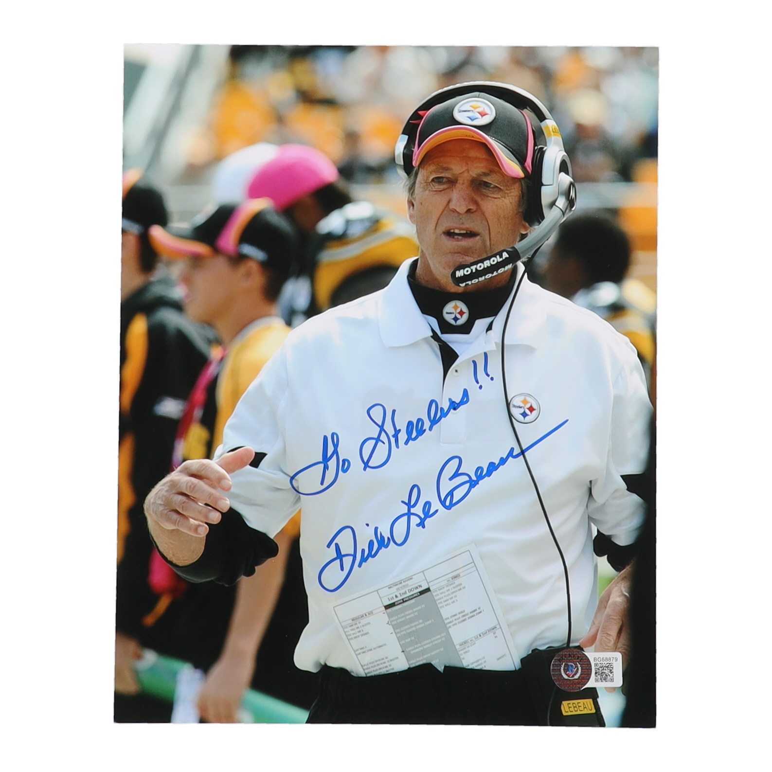 Photo measures 8" x 10" in size and has been hand-signed and inscribed by Dick LeBeau (Pittsburgh Steelers, HOF).