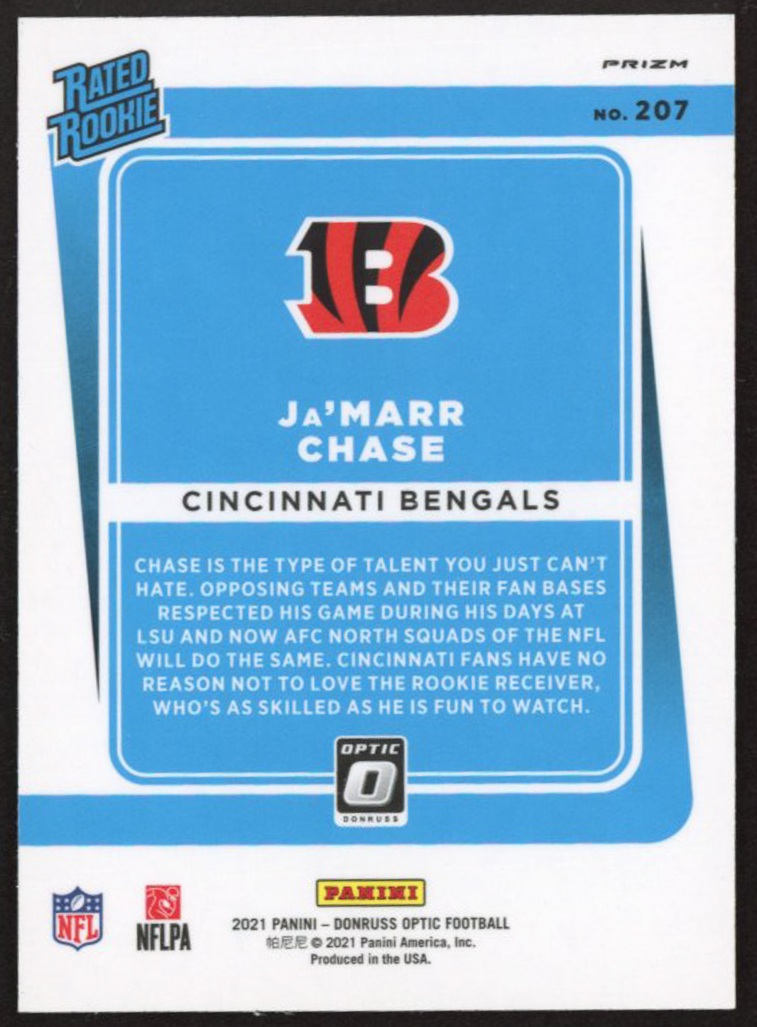 Ja'Marr Chase 2021 Donruss Optic Blue Scope #207 RR RC