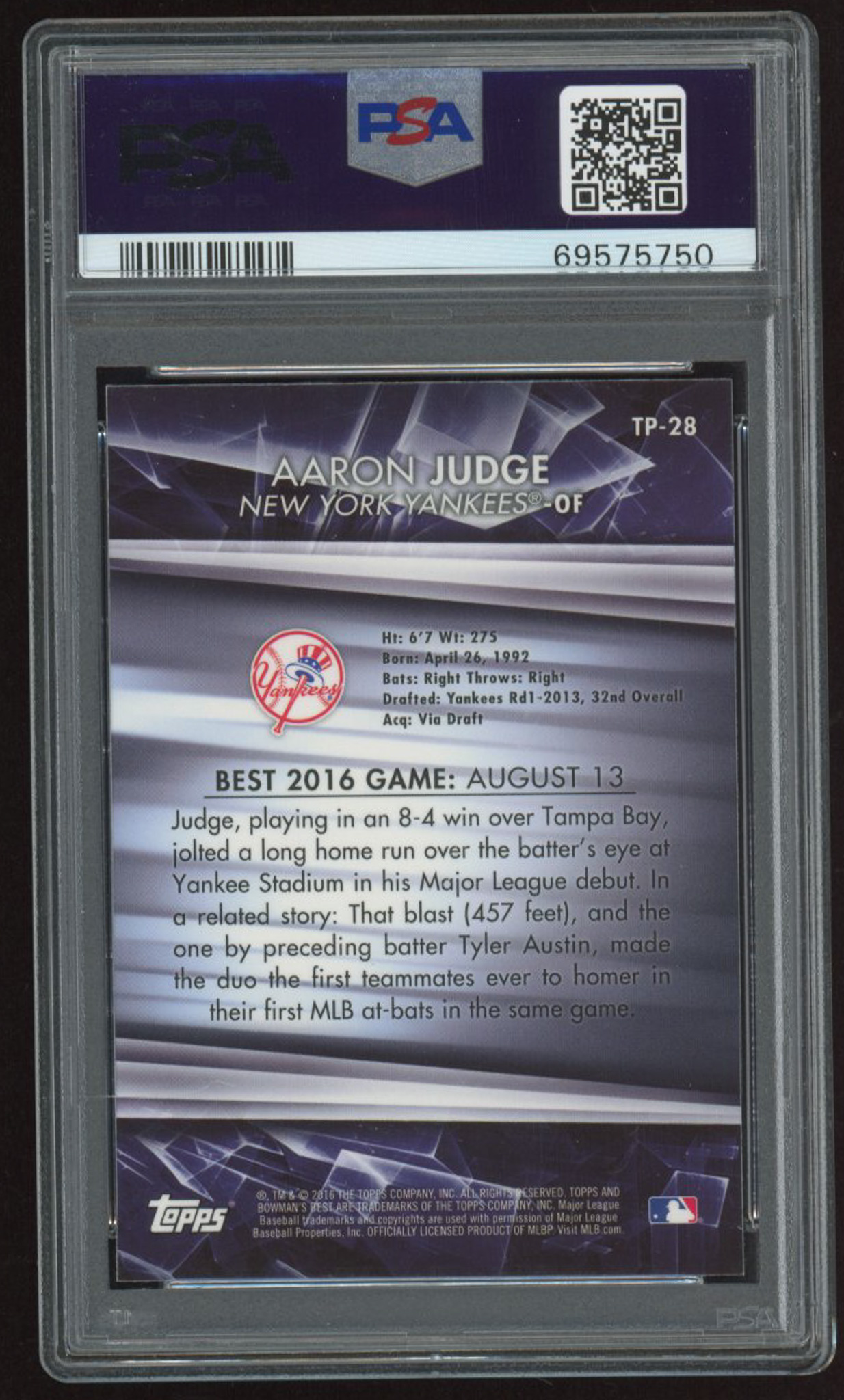 Aaron Judge 2016 Bowman's Best Top Prospects #TP28 RC (PSA 10)
