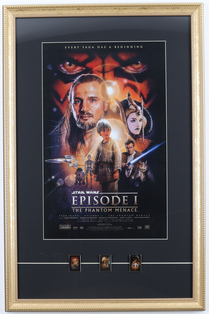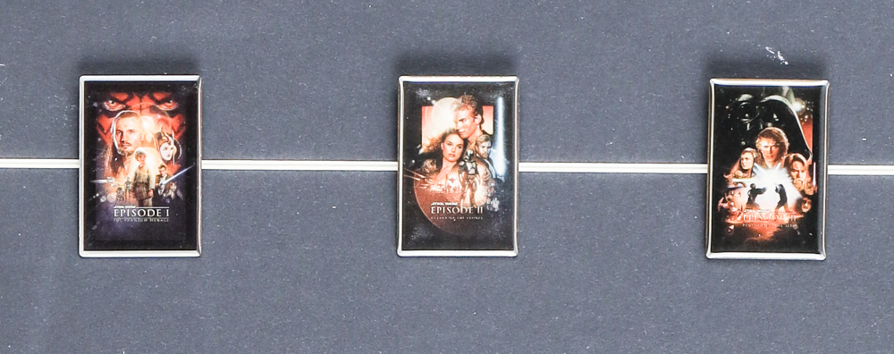 "Star Wars Episode I" Custom Framed Poster Print Display with Complete Set of (3) Japan Only Trilogy Pins