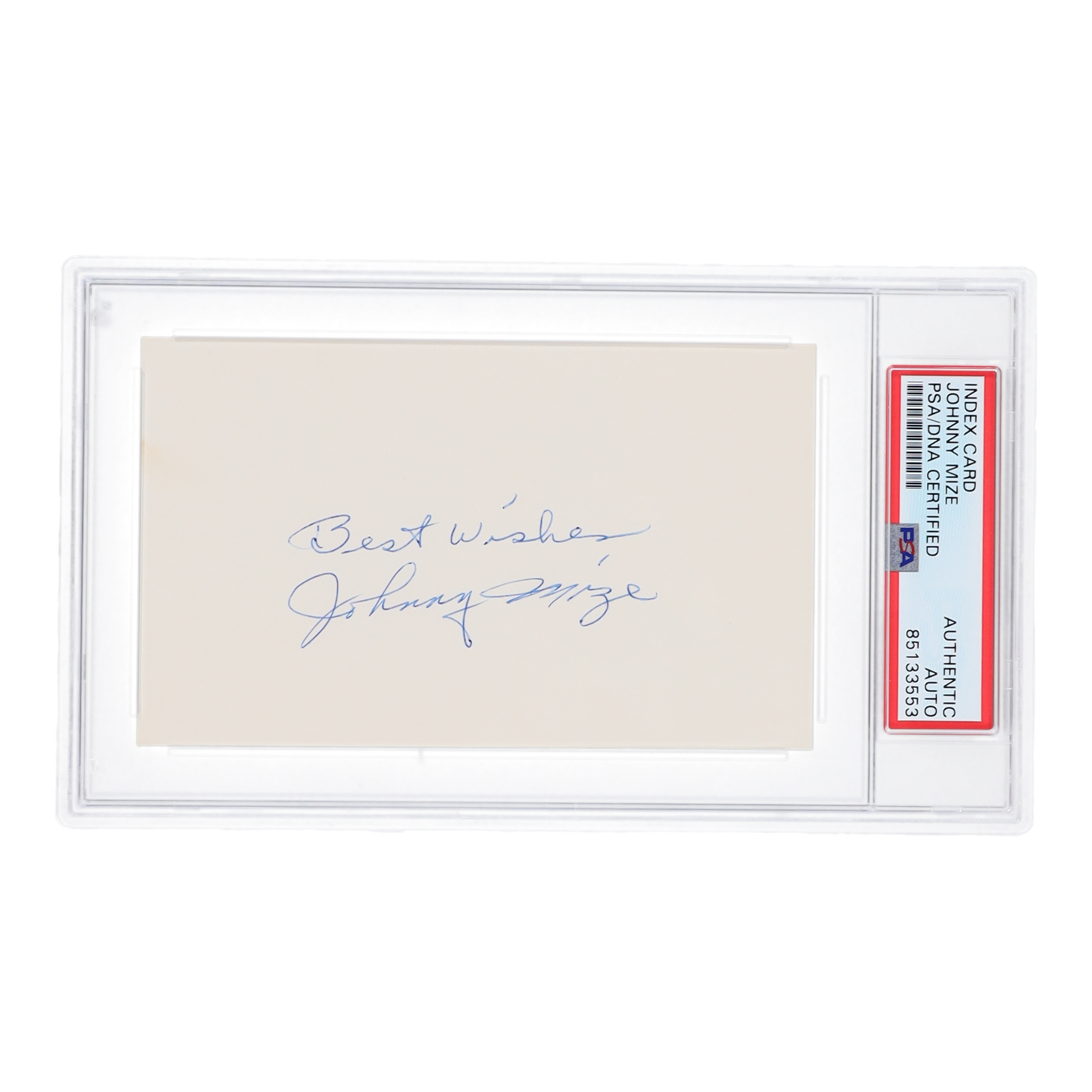 Cut measures 3" x 5" in size and has been hand signed and inscribed by Johnny Mize (D. 1993, St. Louis Cardinals, HOF).