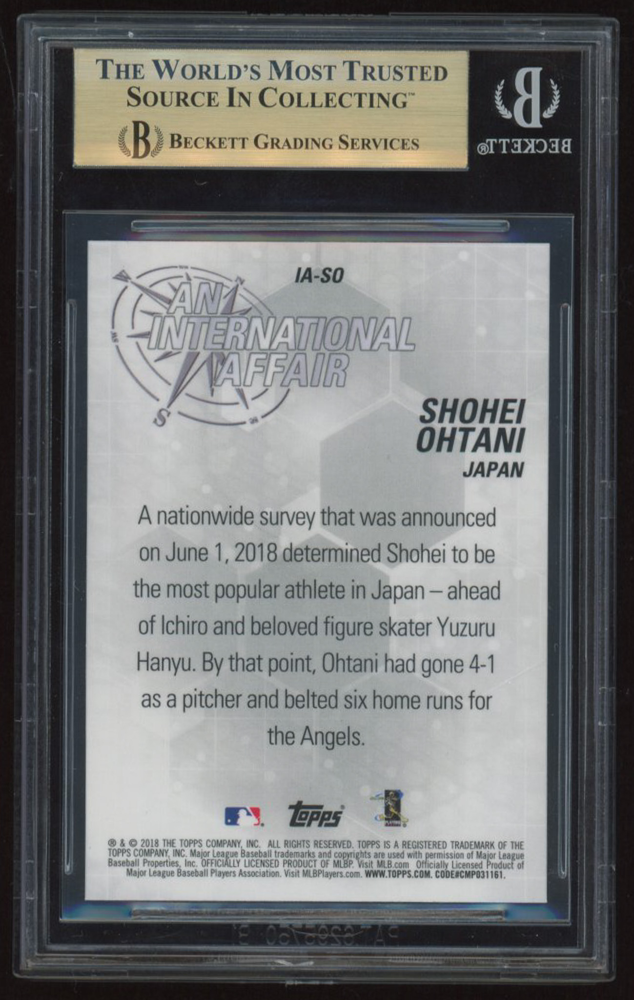 Shohei Ohtani 2018 Topps Chrome Update An International Affair #IASO RC (BGS 9.5)