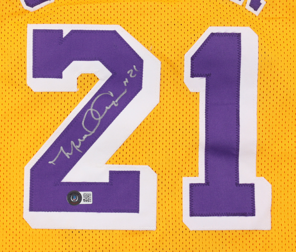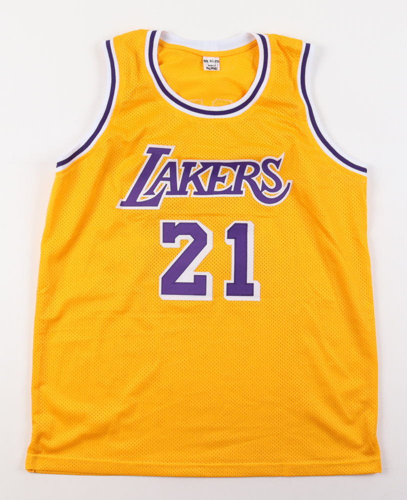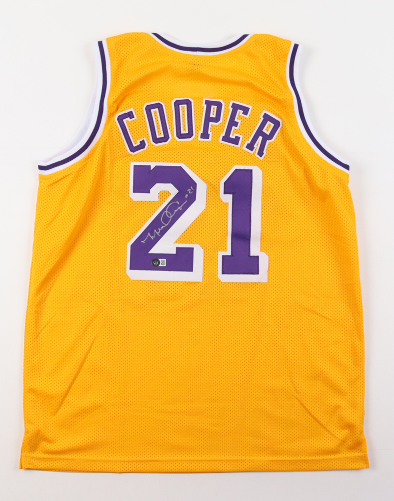 Custom jersey with everything sewn on, size XL. Hand-signed by Michael Cooper.
