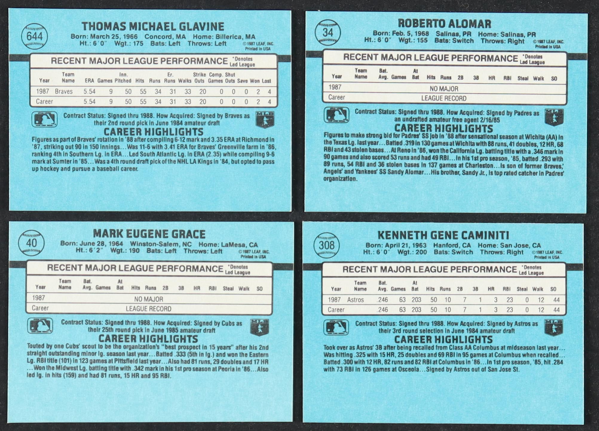 1988 Donruss Baseball Complete Set of (660) Cards with Tom Glavine #644 RC, Roberto Alomar #34 RC, Mark Grace #40 RC, Ken Caminiti #308 RC