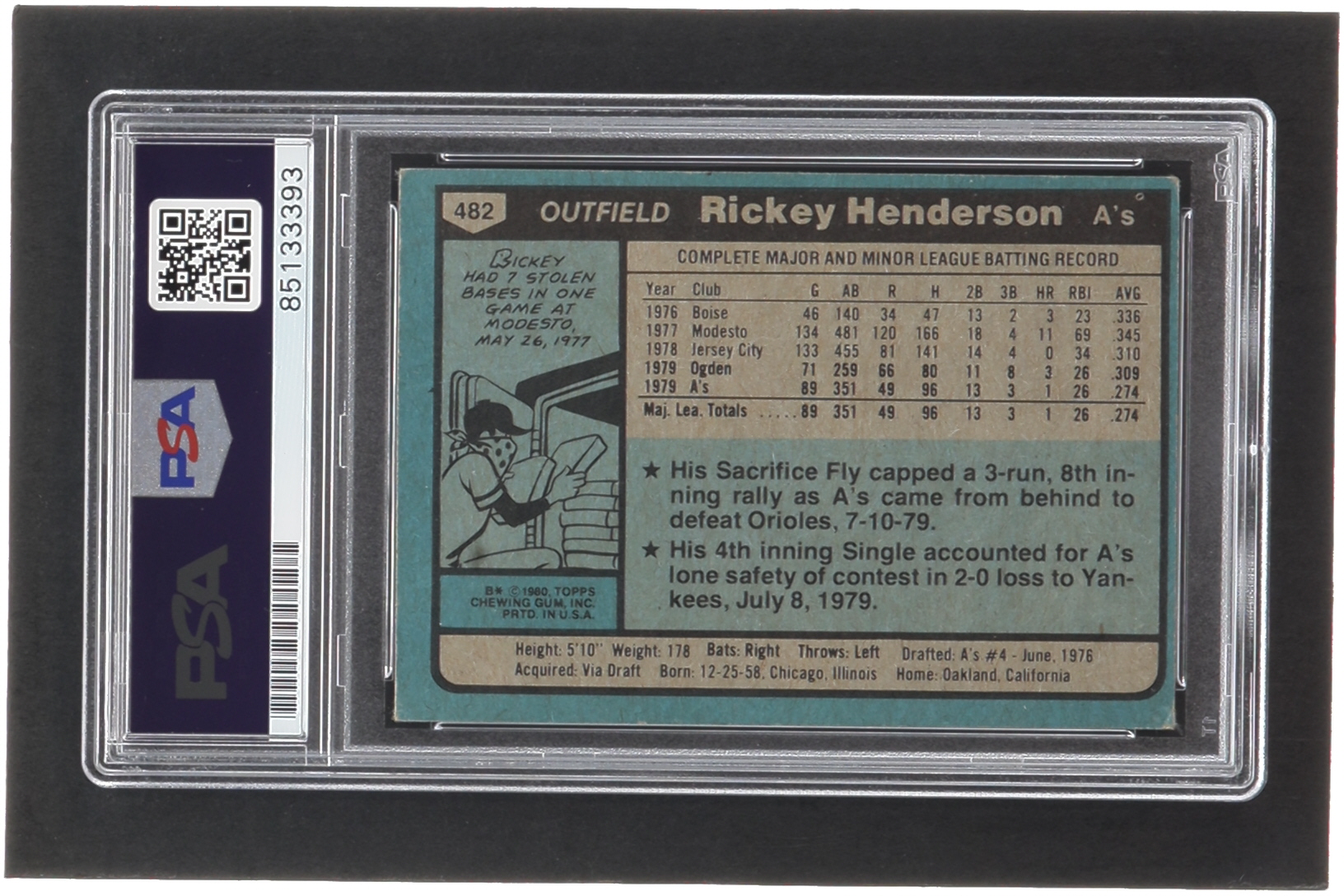 Rickey Henderson Signed 1980 Topps #482 RC (PSA)