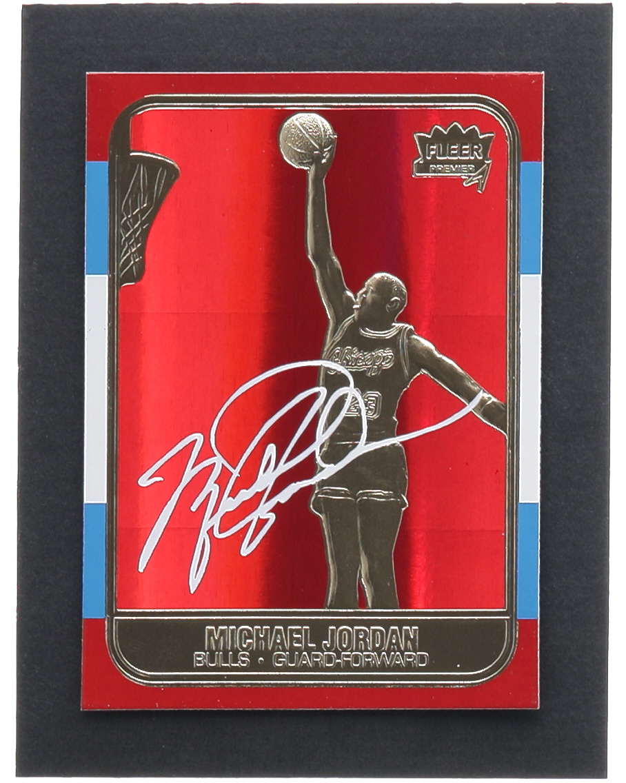 Michael Jordan 1997 Fleer Premier Signature Series Red Holo Refractor 23Kt Gold Card