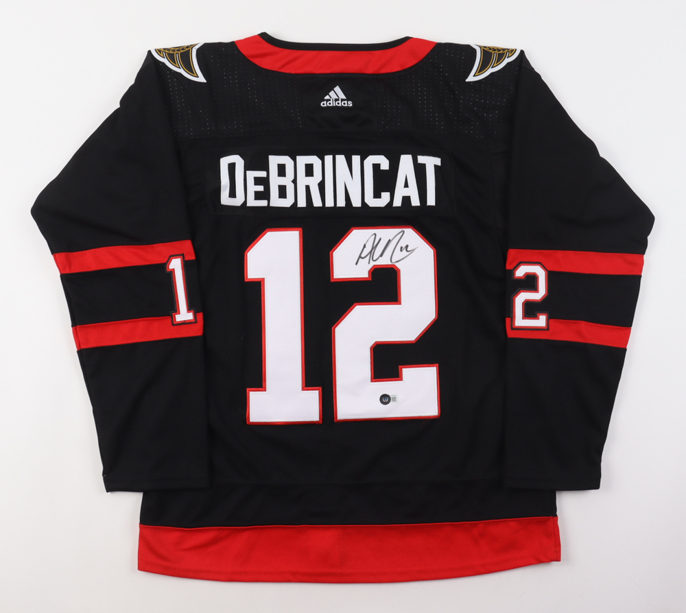 Custom jersey. Everything is sewn on, size 52. Hand-signed by Alex Debrincat.