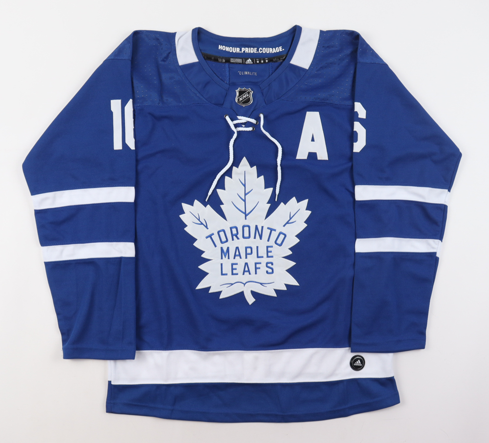 Custom jersey. Everything sewn on, size 50. Hand-signed by Mitch Marner.