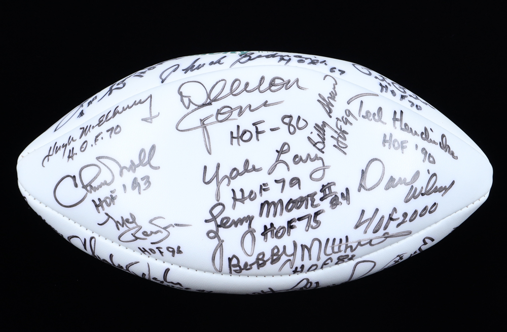 Football Hall of Famers NFL Football Signed & Inscribed By (29) with Jimmy Johnson, Joe Perry, Mel Renfro, Chuck Noll (Beckett)