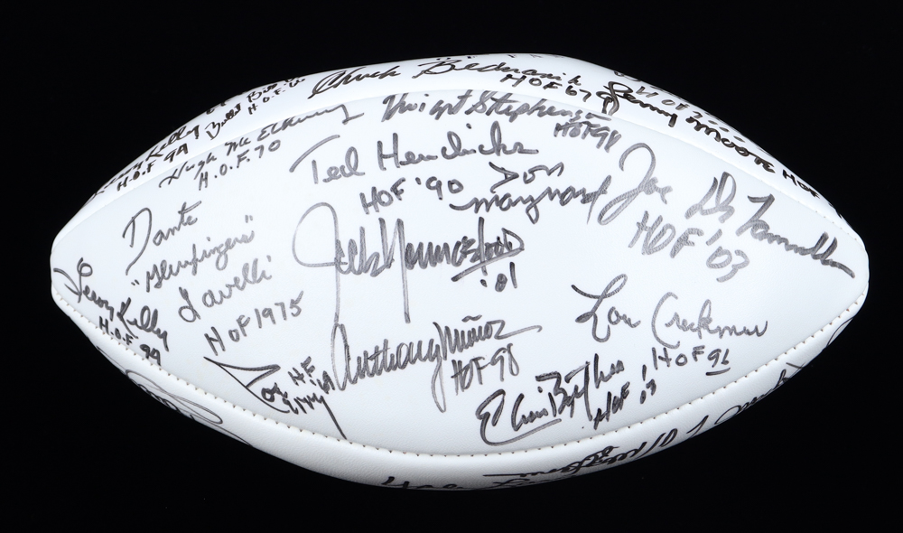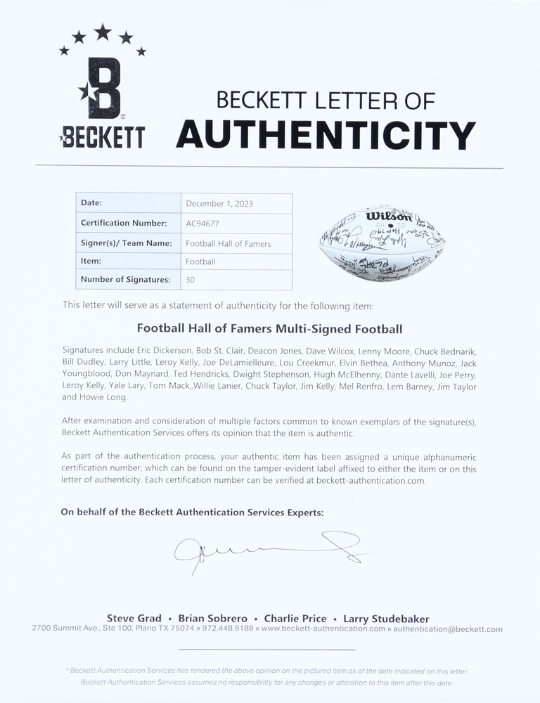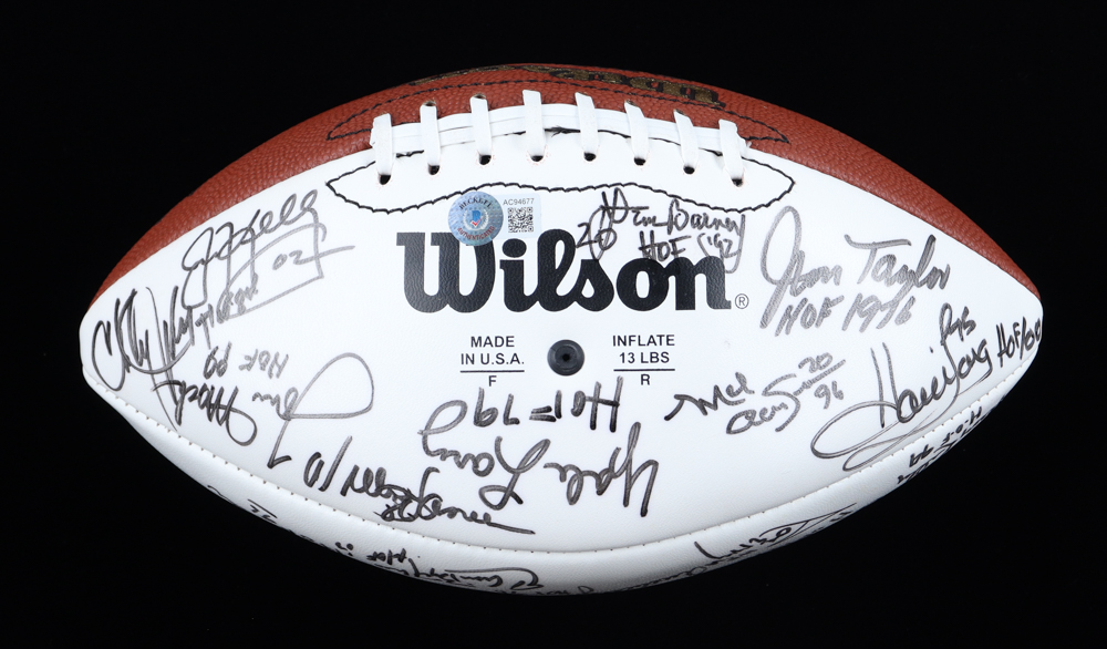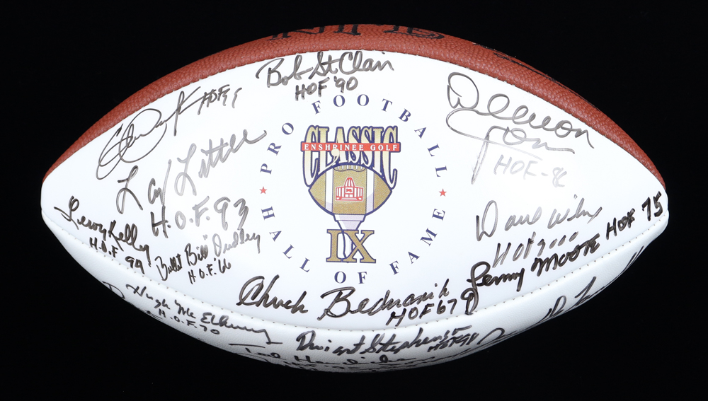 Football Hall of Famers NFL Football Signed & Inscribed By (30) with Eric Dickerson, Howie Long, Willie Lanier, Jim Kelly (Beckett)