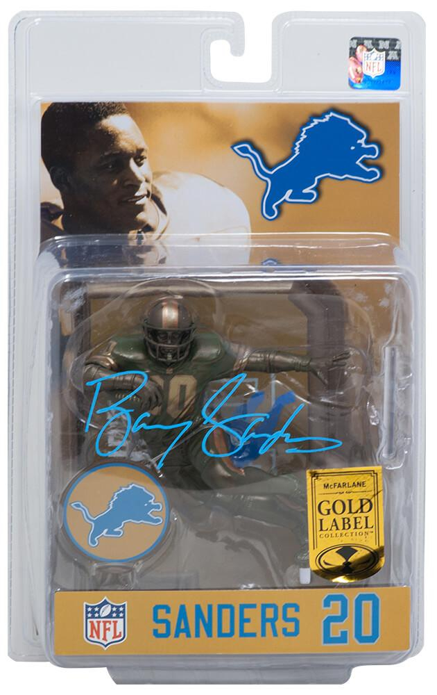 Bronze McFarlane Toys figurine has been hand-signed on the front packaging by Barry Sanders (Detroit Lions, HOF).