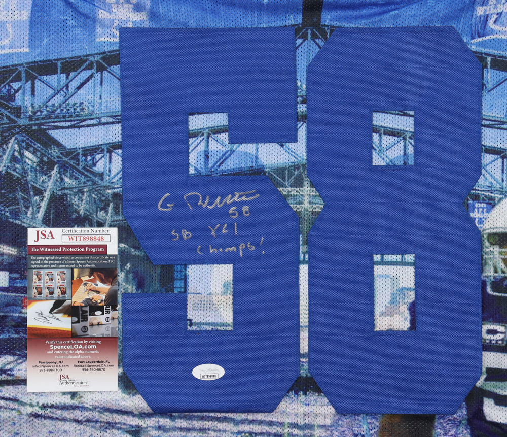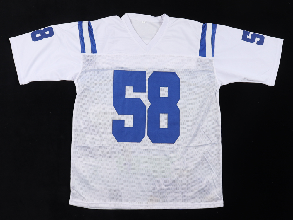 Custom jersey. Everything sewn on, size XL. Hand-signed and inscribed by Gary Brackett.