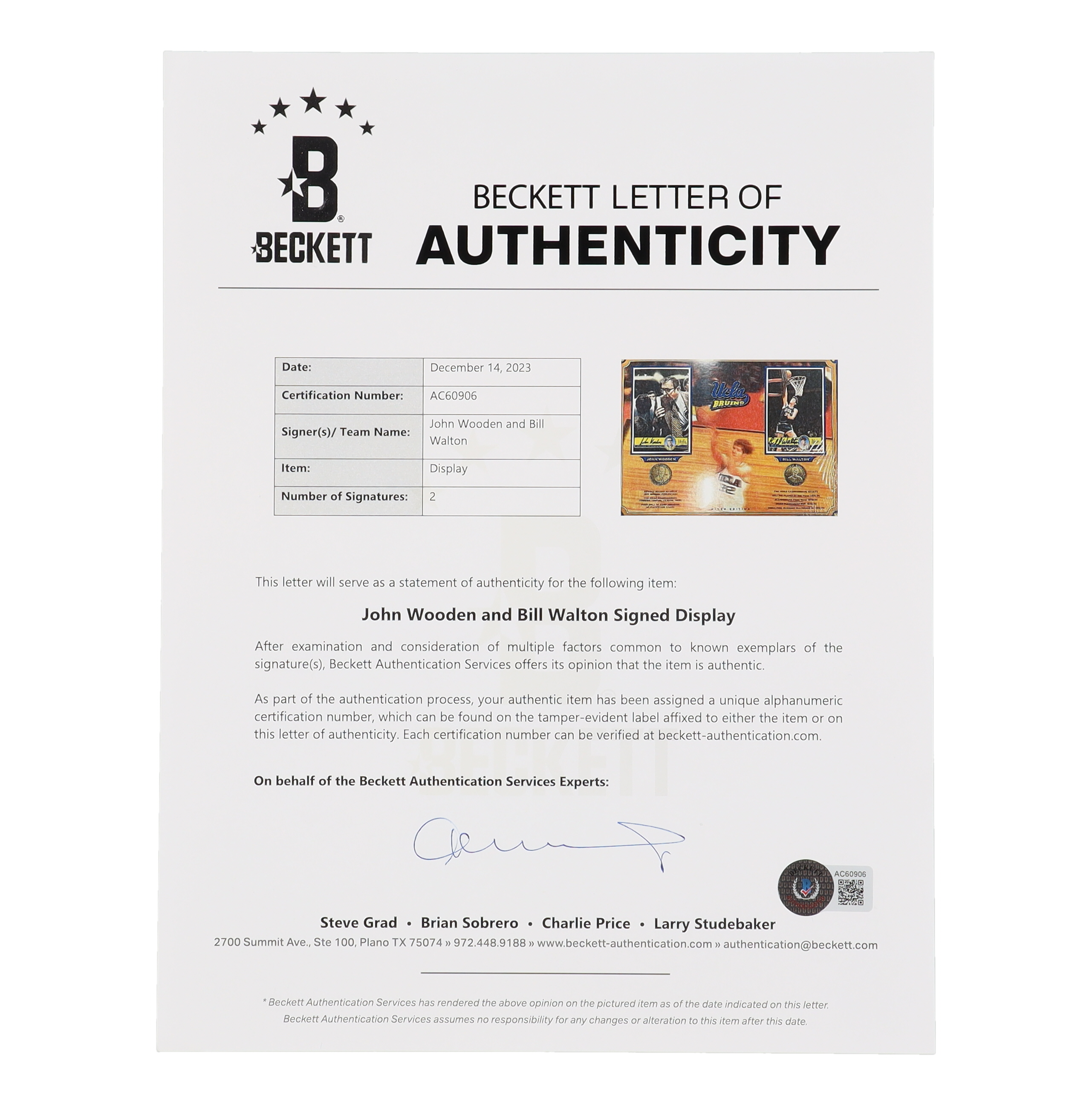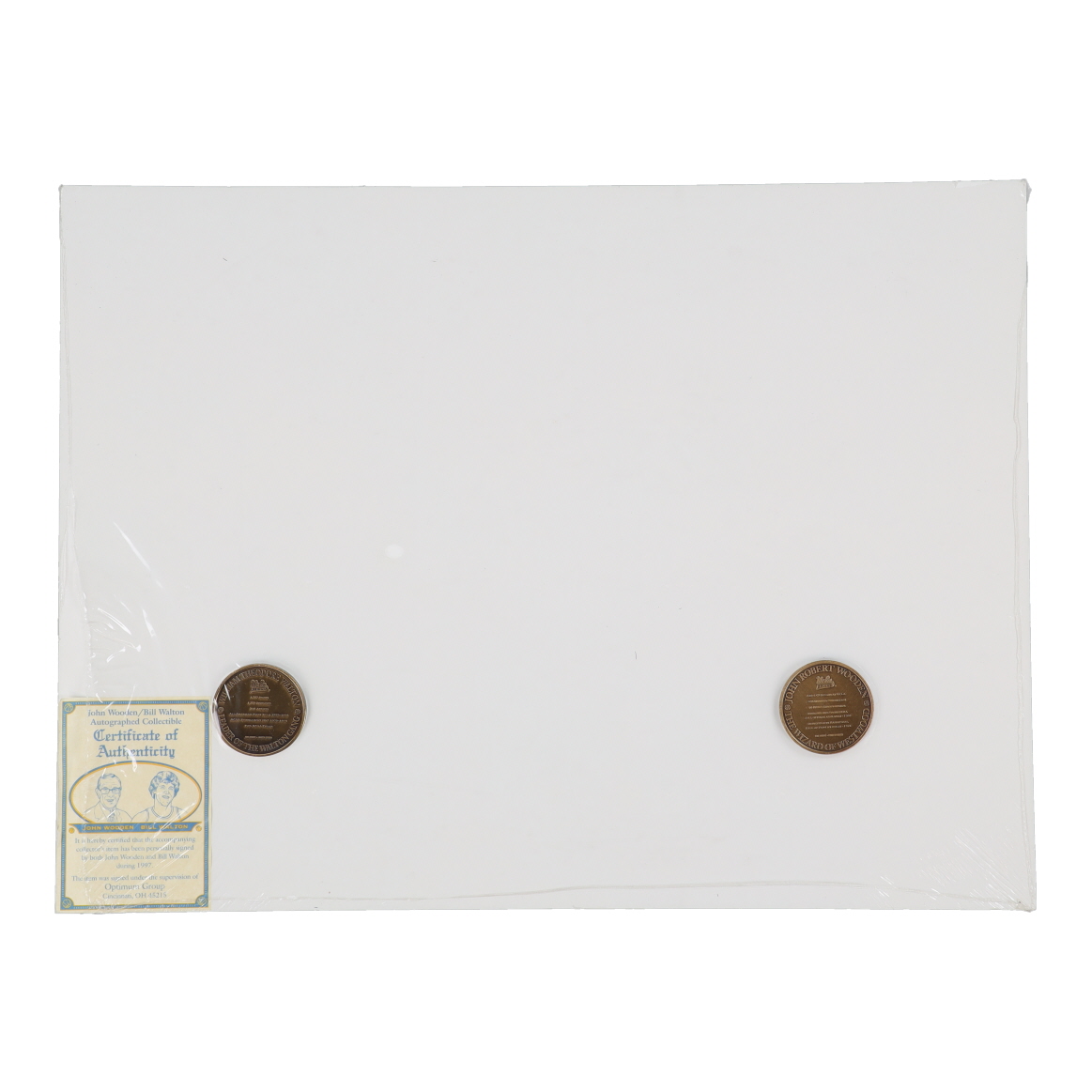 John Wooden & Bill Walton Signed UCLA Card and Bronze Coin Display (Beckett)