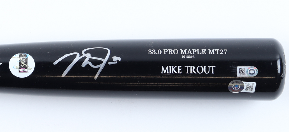 Old Hickory Pro Maple MT27 Player Model baseball bat. Hand-signed by Mike Trout (Los Angeles Angels).