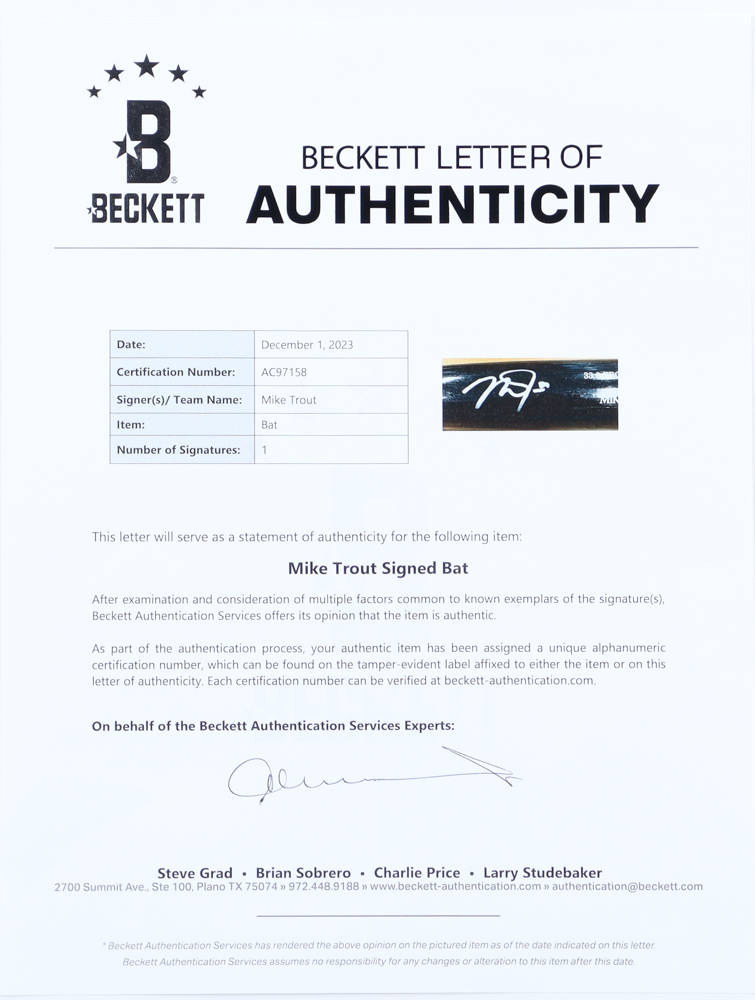 Mike Trout Signed Old Hickory Baseball Bat (Beckett & MLB)