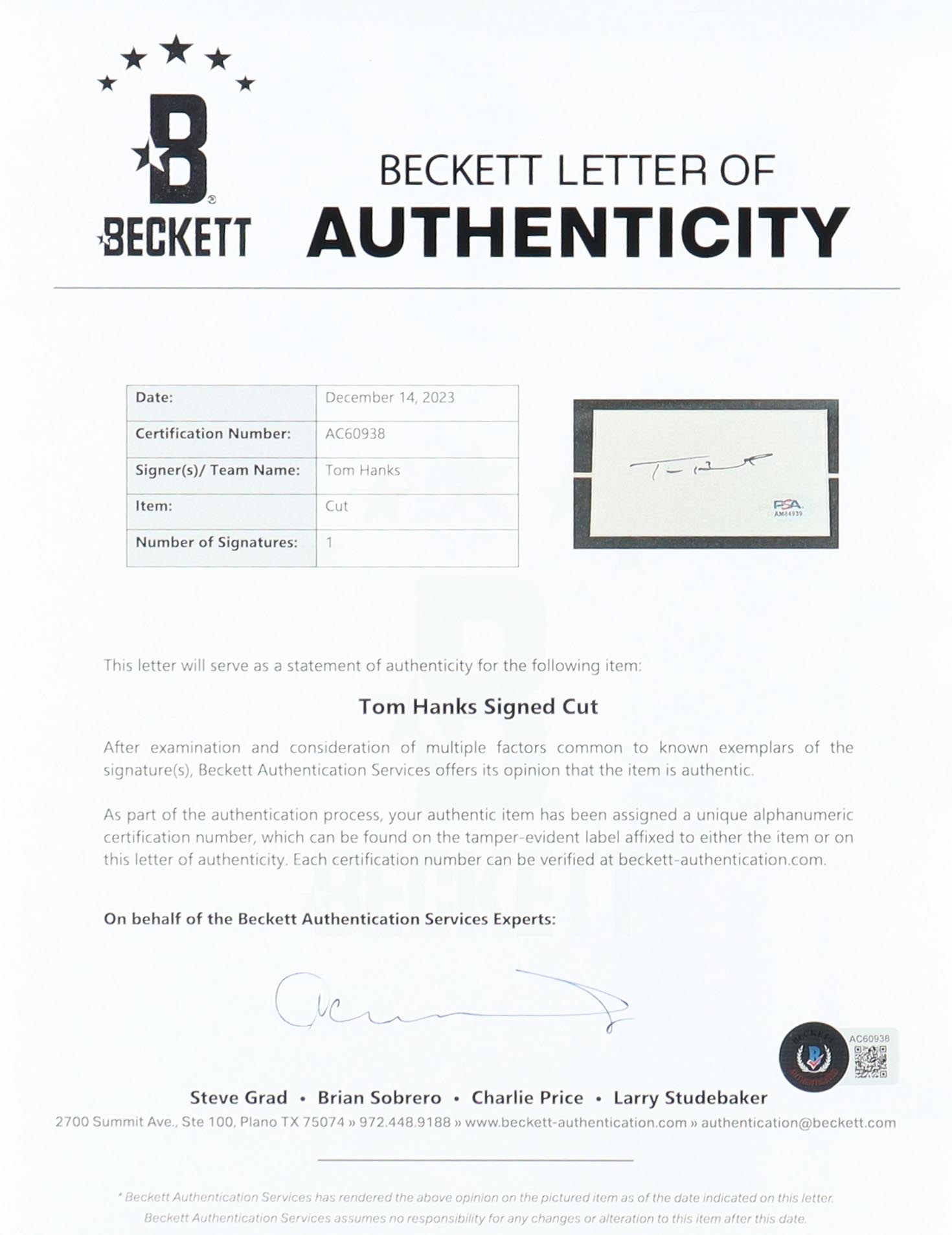 Authentication: Beckett LOA & PSA COA