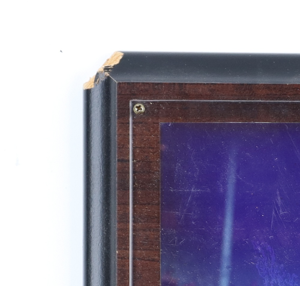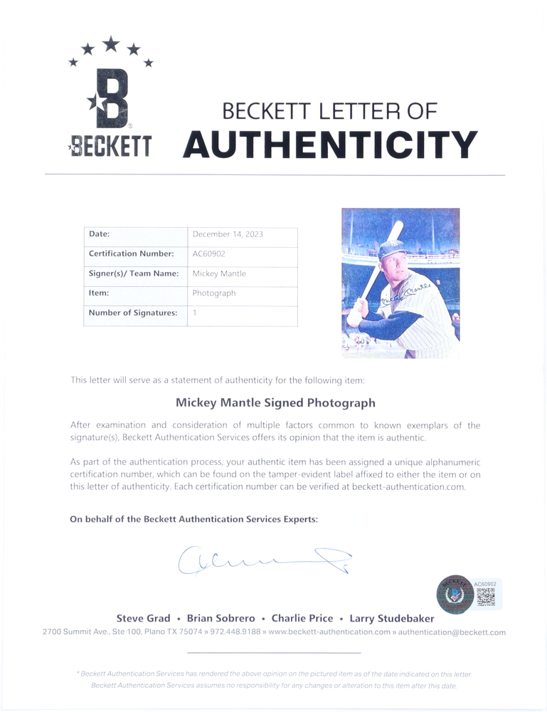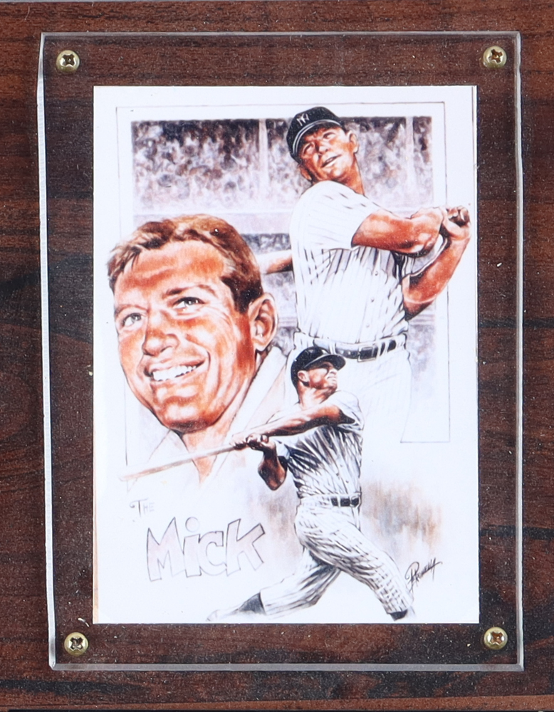 Plague measures approximately 12" x 15" in size. Features a photo that has been hand-signed by Mickey Mantle (D. 1995, HOF). Please note, damage to top corner of plaque. Refer to photos for more details on condition of the item.