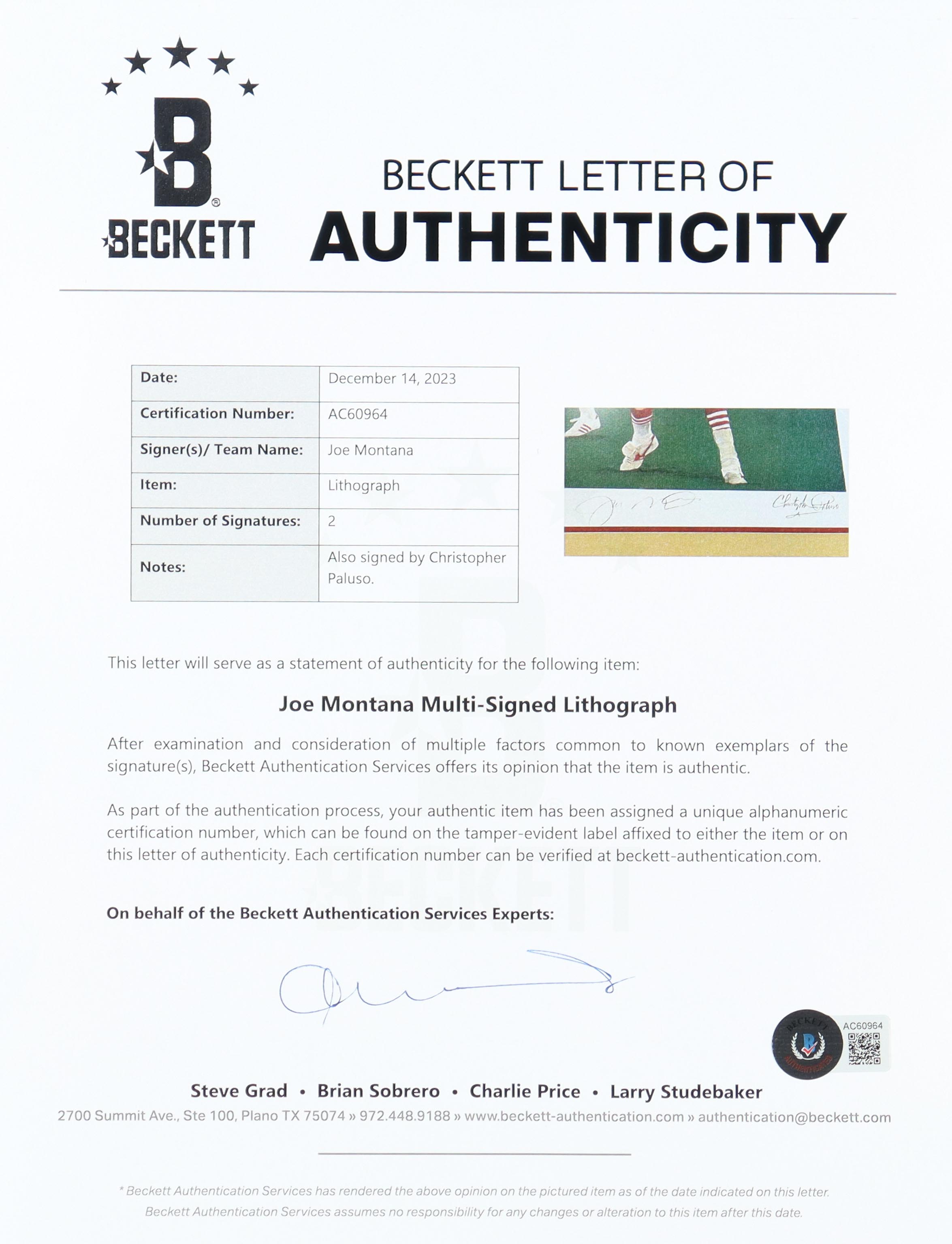 Joe Montana & Christopher Paluso Signed LE 49ers Custom Framed Lithograph (Beckett)