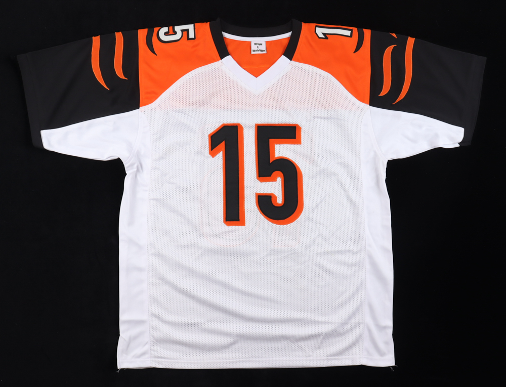 Custom football jersey. Everything sewn on, size XL. Hand-signed by John Ross III.